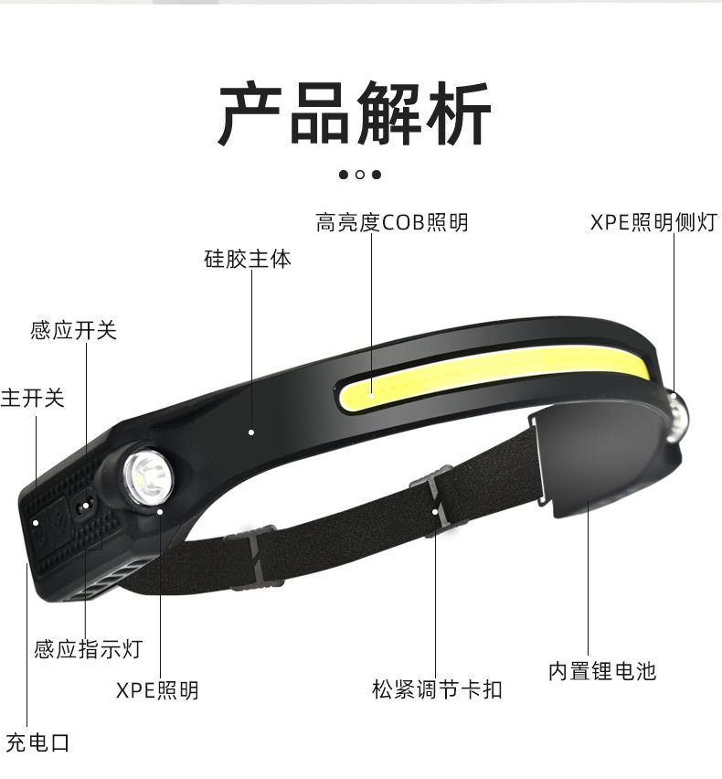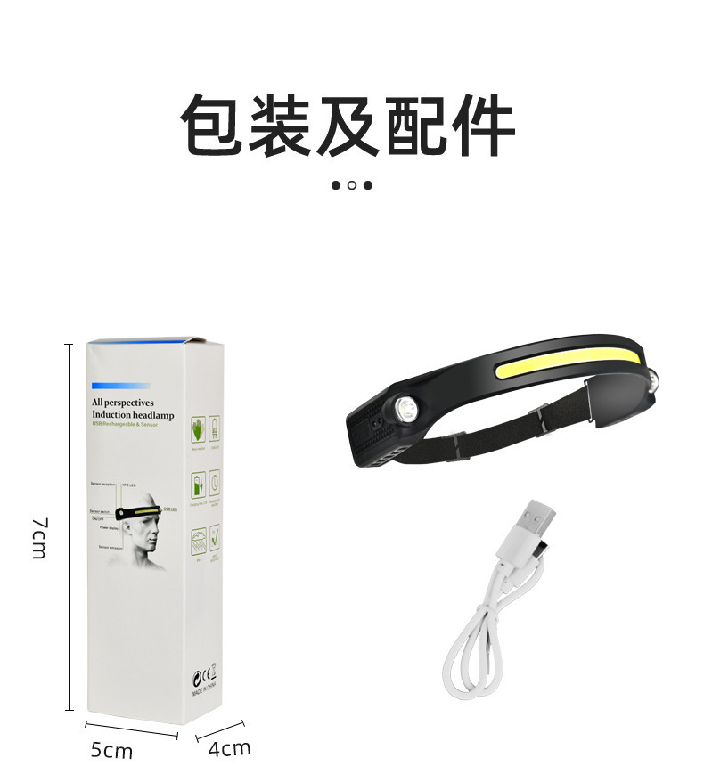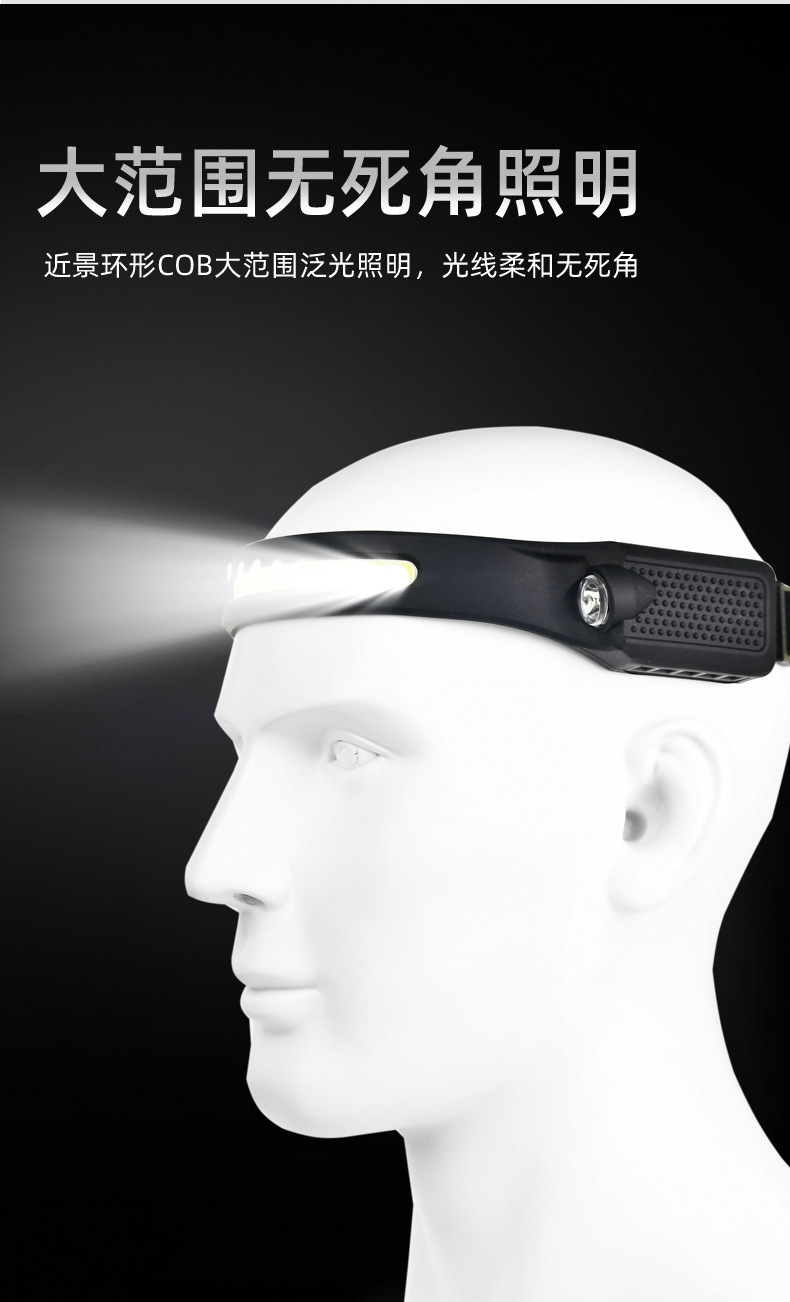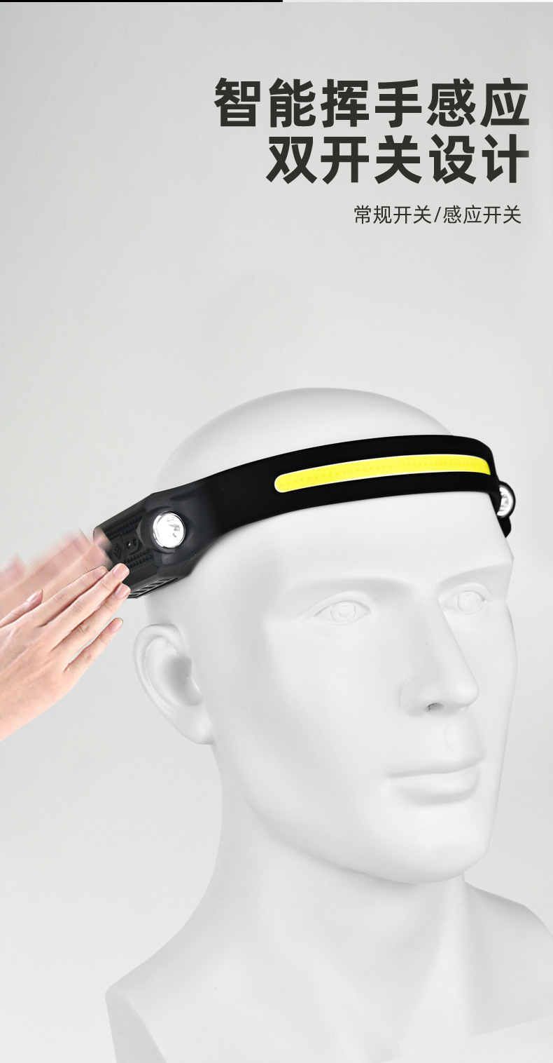 웨이브 유도 cob 실리콘 헤드라이트 야외 라이딩 라이트 USB 충전식 헤드 장착 러닝 라이트 LED 강력한 라이트 프로브