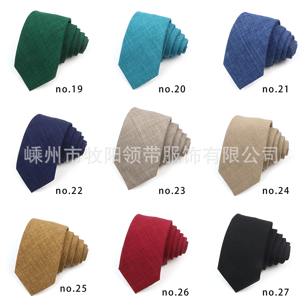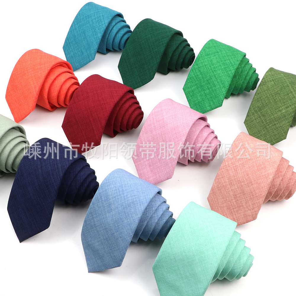 남자 단색 코튼 넥타이 캐주얼 핸드 타이