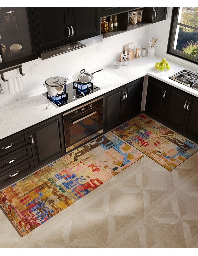 하이 엔드 라이트 럭셔리 미국 복고풍 주방 긴 바닥 매트 오일 방지 미끄럼 지울 수없는 빨 수있는 발 매트 얼룩 방지 흡수성 매트