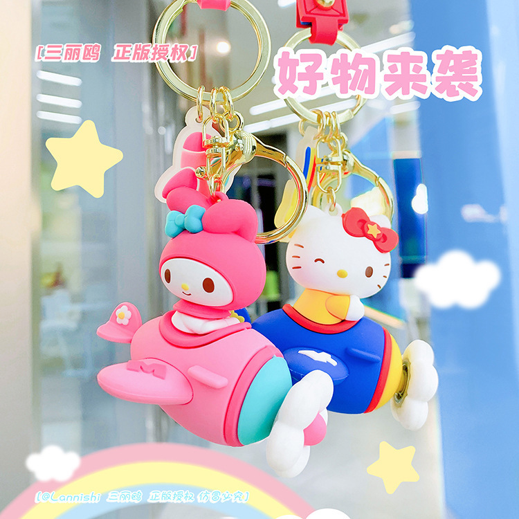 정품 산리오 턴 귀여운 재미있는 항공기 로프 버클 만화 큰 귀 개 멜로디 백 키 체인 펜던트