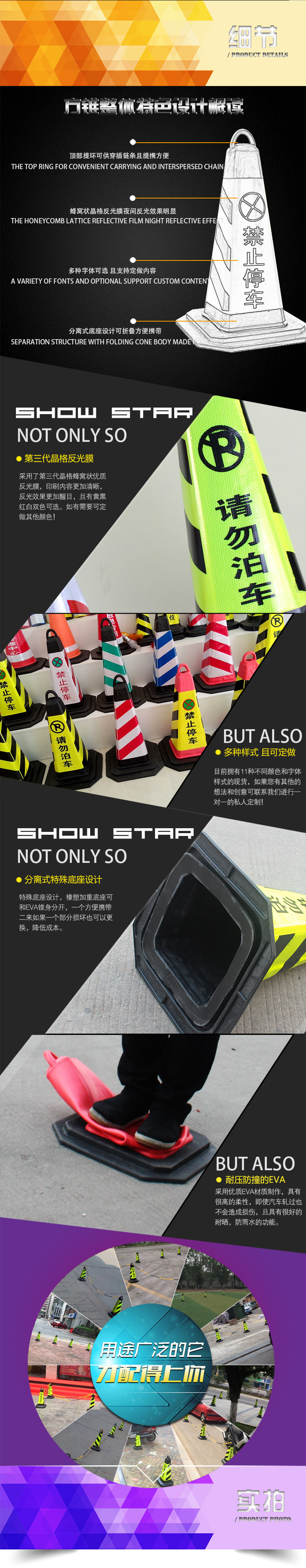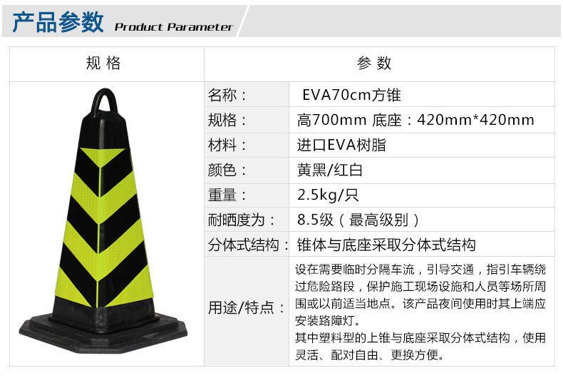 EVA路锥 橡胶方锥70cm 路锥泡沫锥路障 提环雪糕筒压不坏交通设施