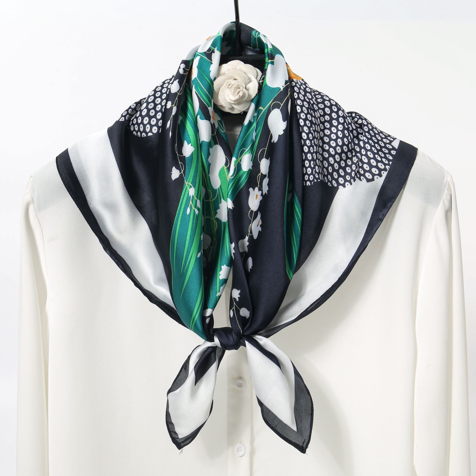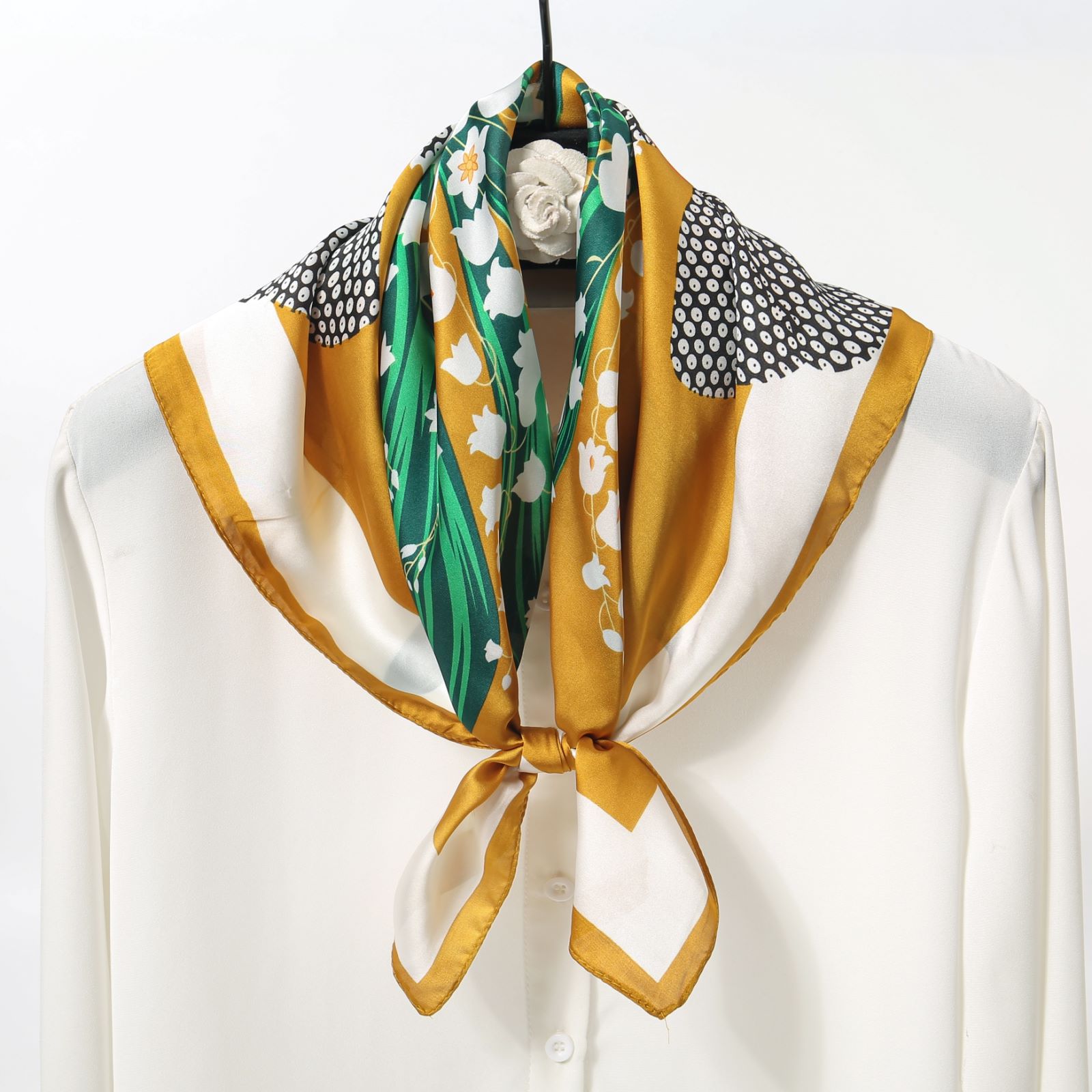 봄과 여름 새로운 릴리 인쇄 실크 스카프 유행 올 매칭 70cm 인공 실크 작은 사각형 스카프 여성을위한 국가 스타일 새틴 스카프