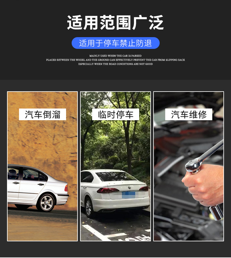 고무 슬립 정지 휴대용 미끄럼 방지 자동차 정지 플라스틱 삼각형 나무 자동차 트럭 바퀴 정지 자동차 감속 블록 고무