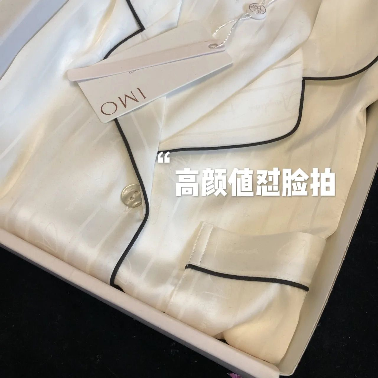 2024春季新款情侣男女睡衣长袖长裤仿真丝冰丝开衫翻领家居服套装