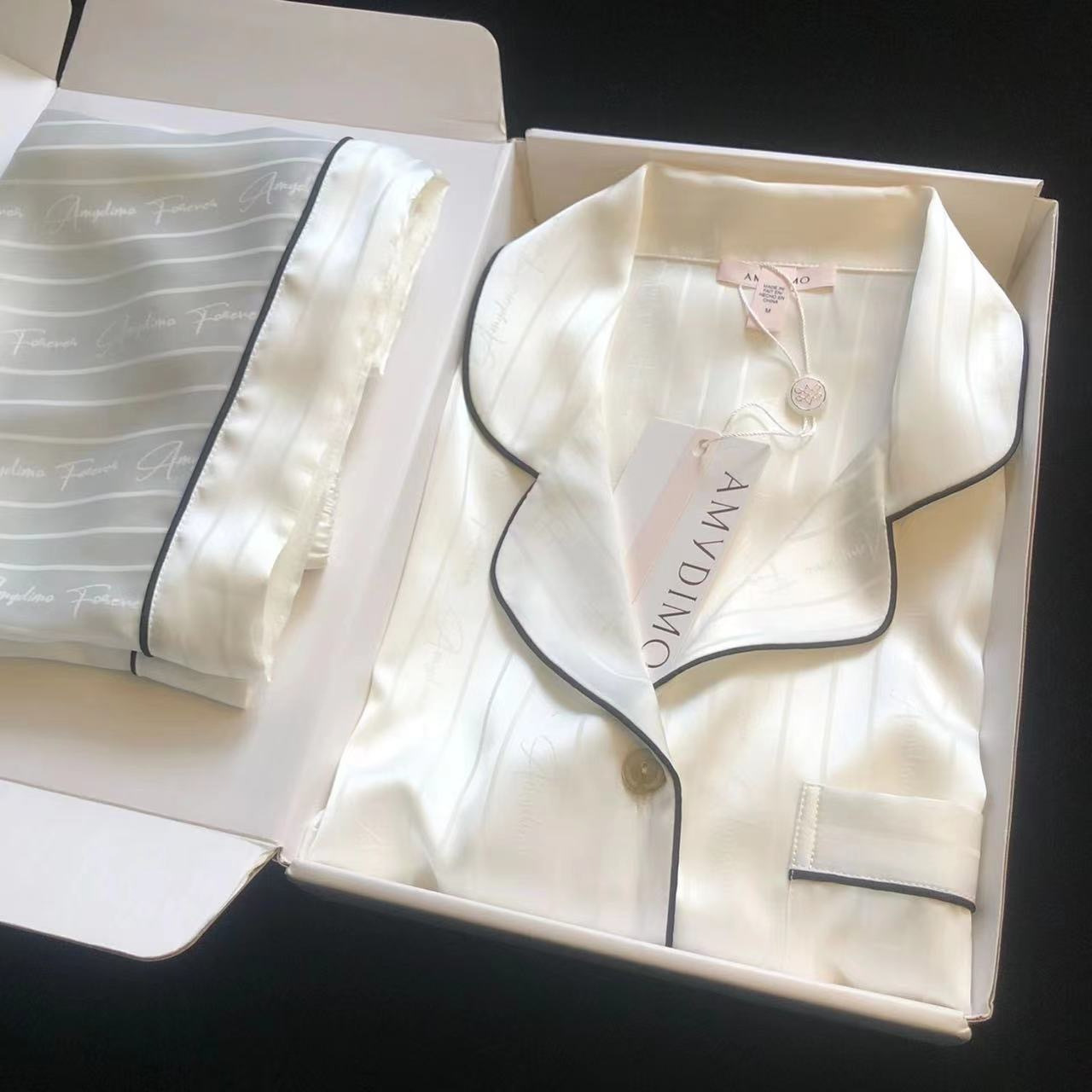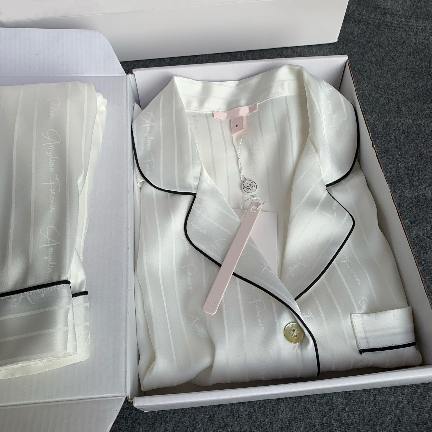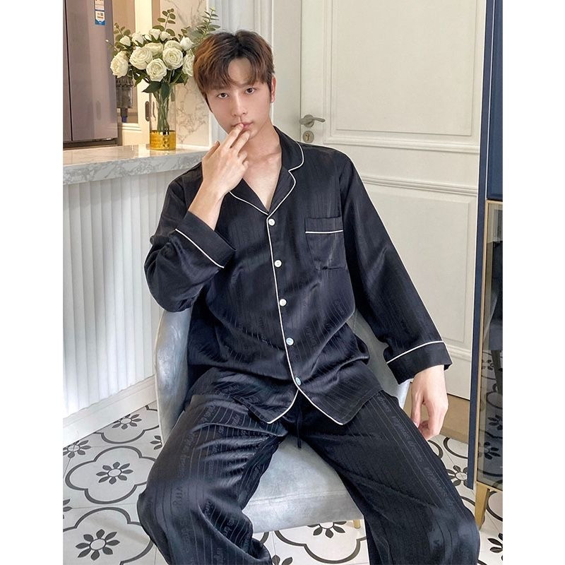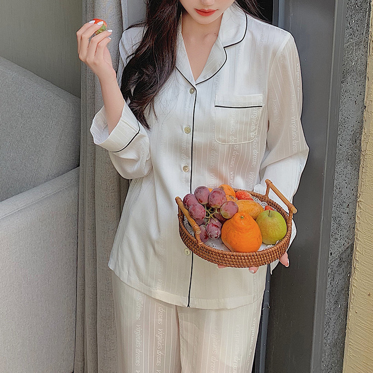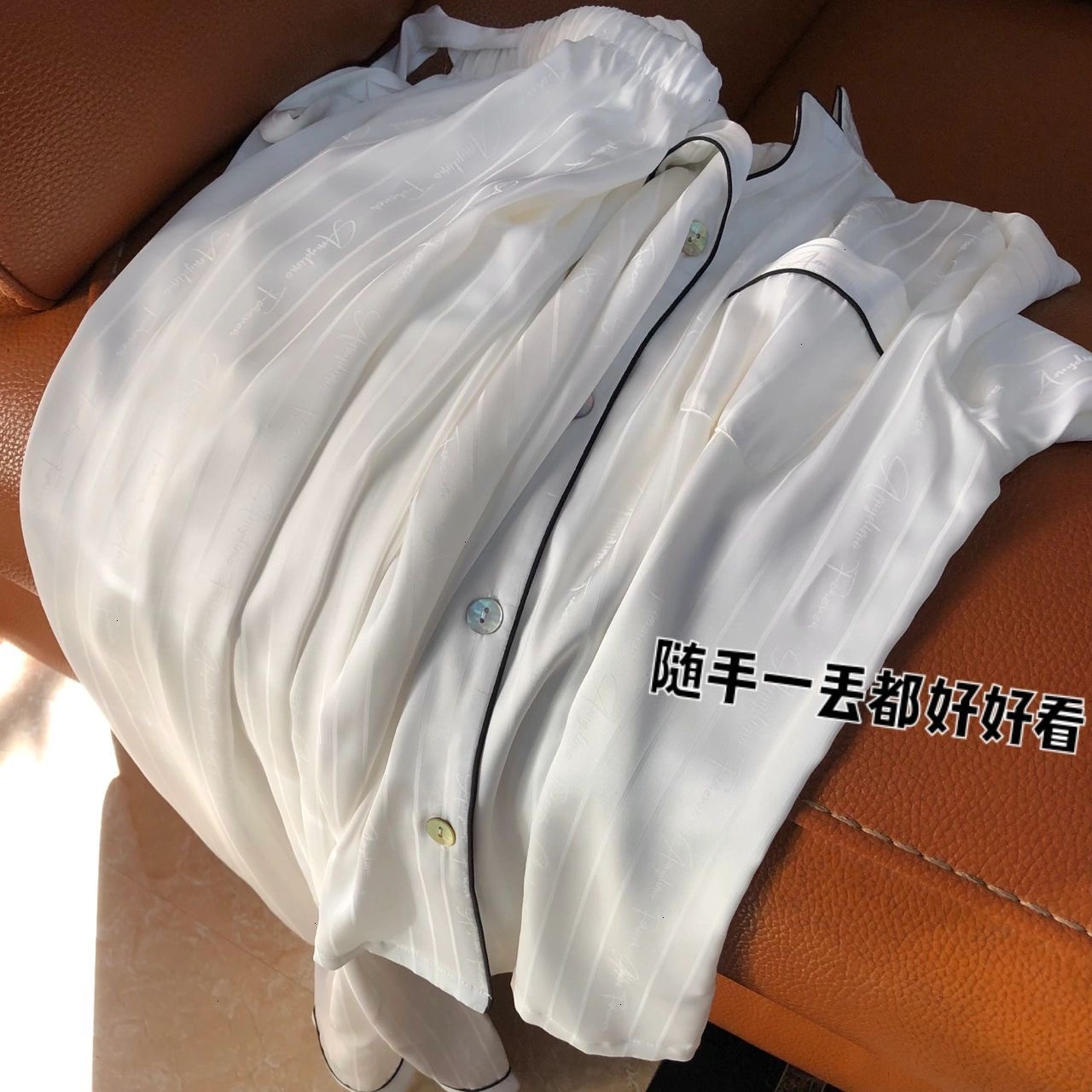 새로운 커플 잠옷 여성의 봄과 가을 얇은 긴 소매 하이 엔드 아이스 실크 남성 청소년 여름 홈웨어 세트스토어 가기