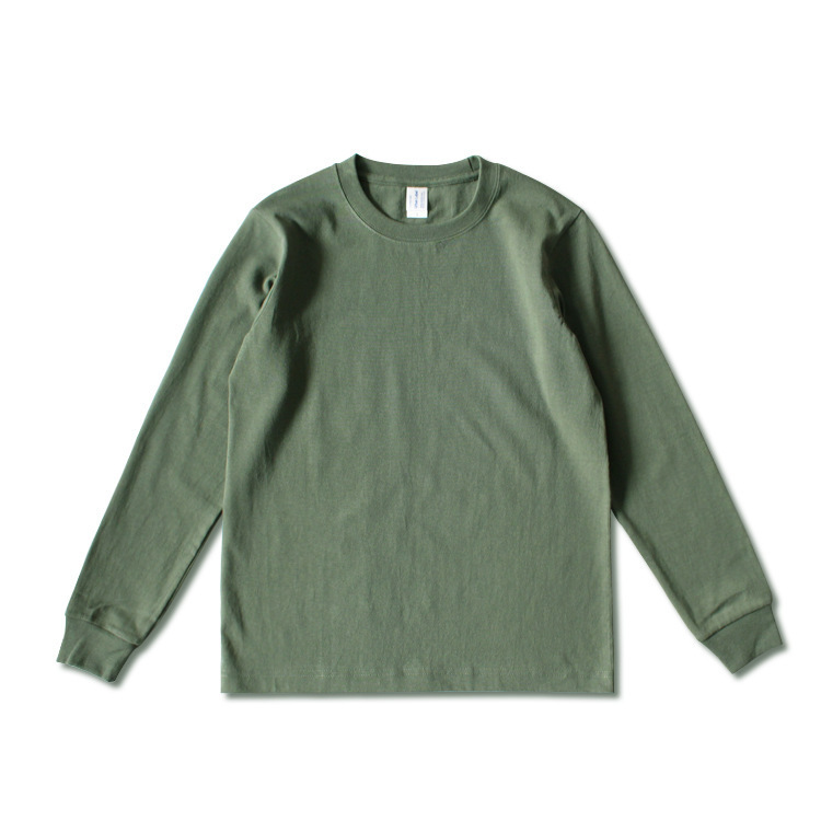 UL245g咔叽重磅复古 美棉粗犷无缝筒织圆领长袖T恤 秋冬男打底衫