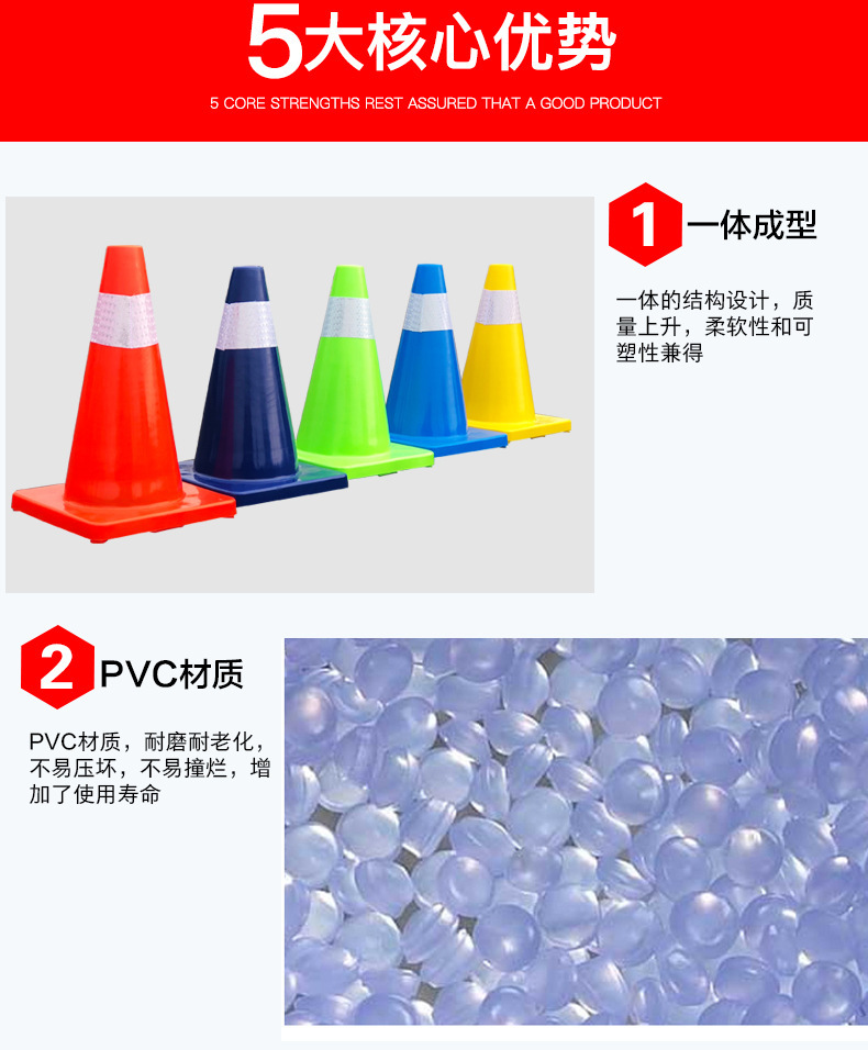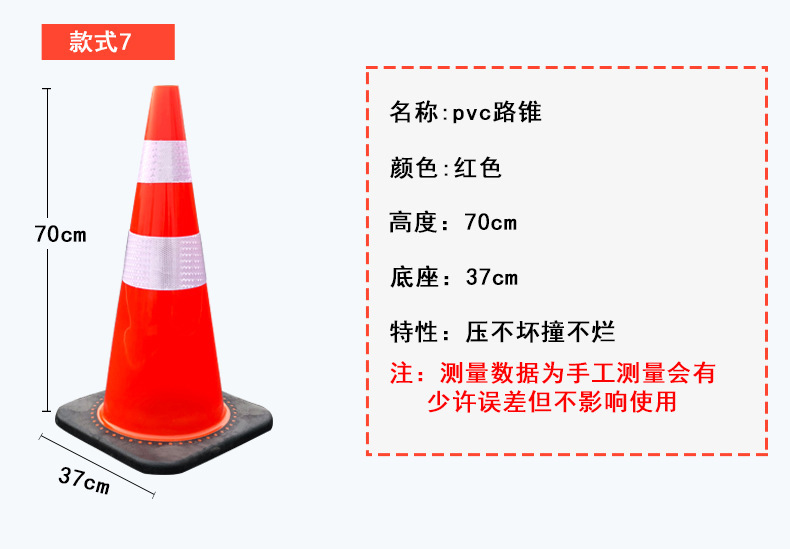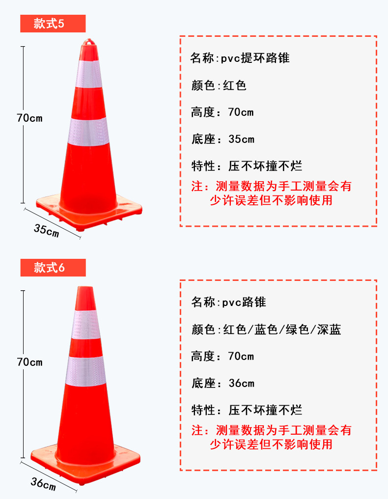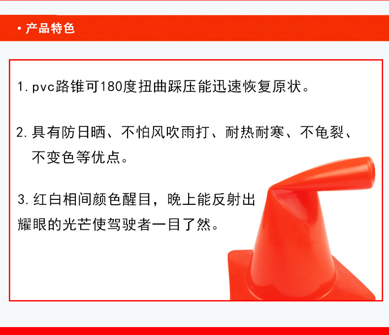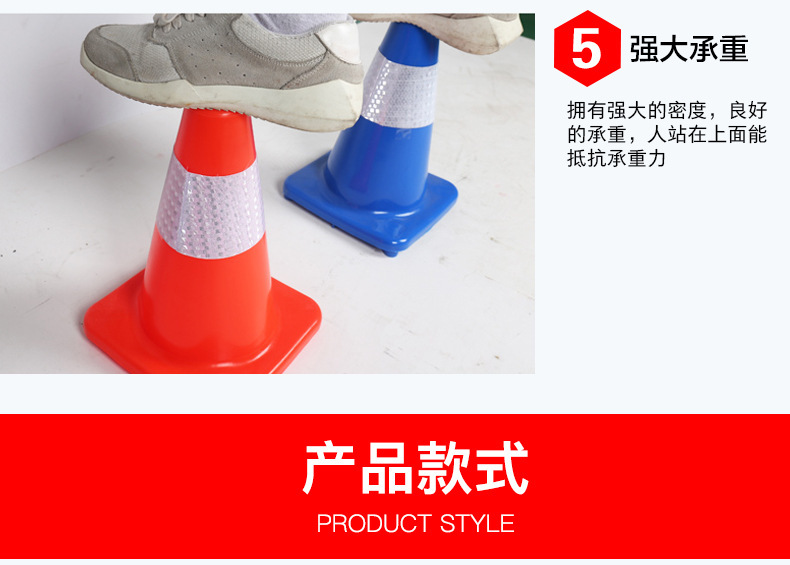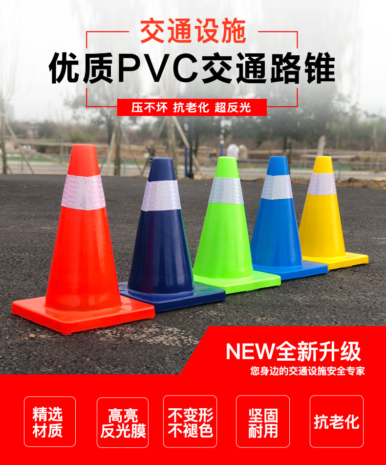 PVC路锥70cm反光锥桶试驾路锥雪糕筒警示锥路障锥圆锥交通安全锥