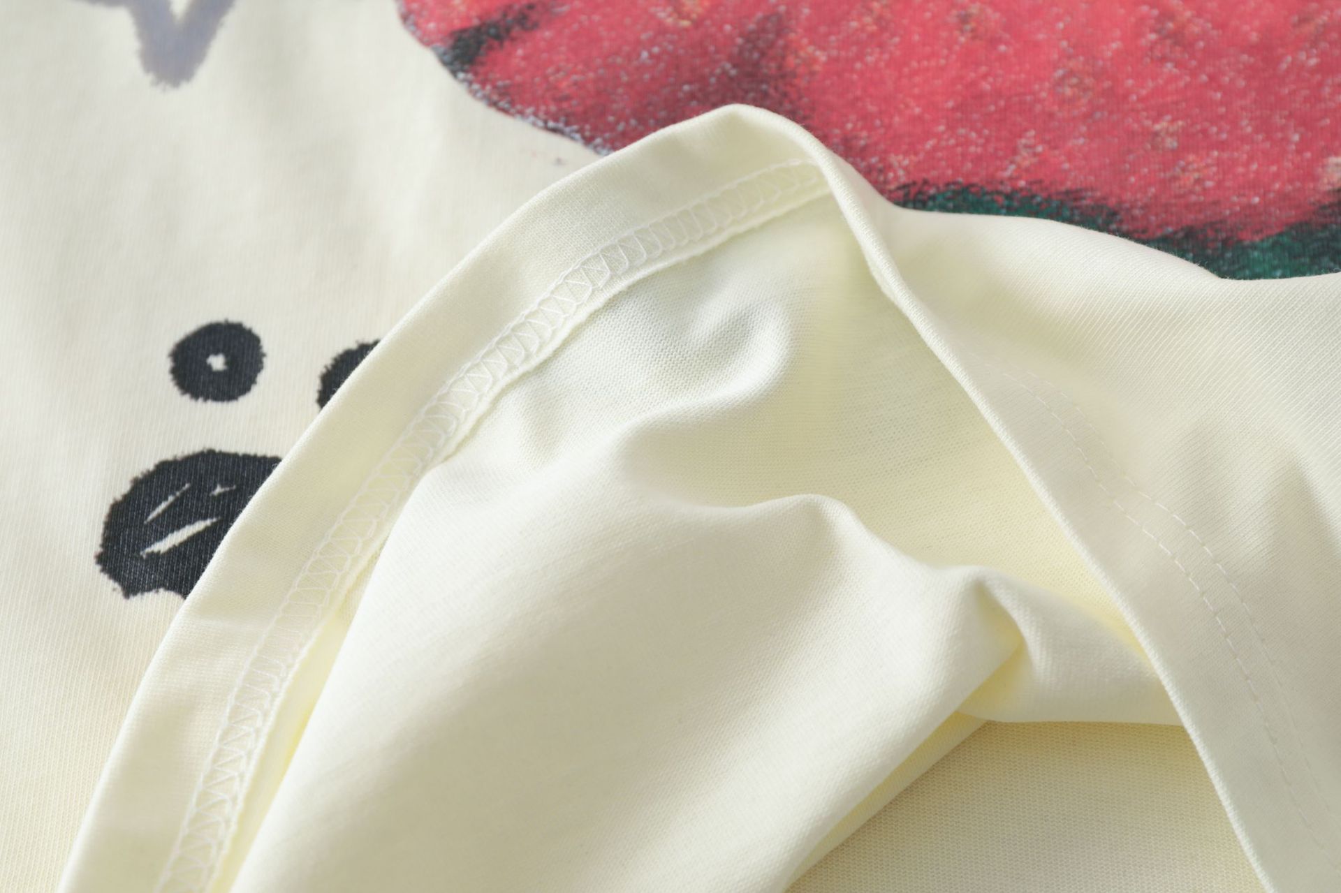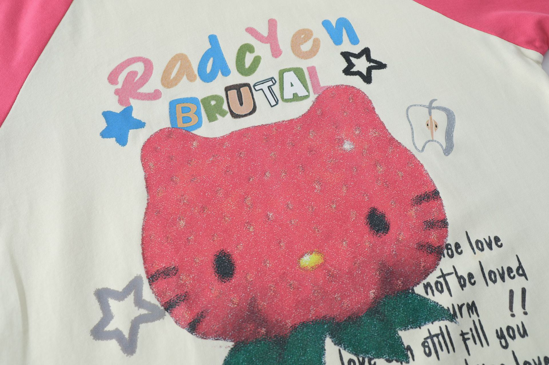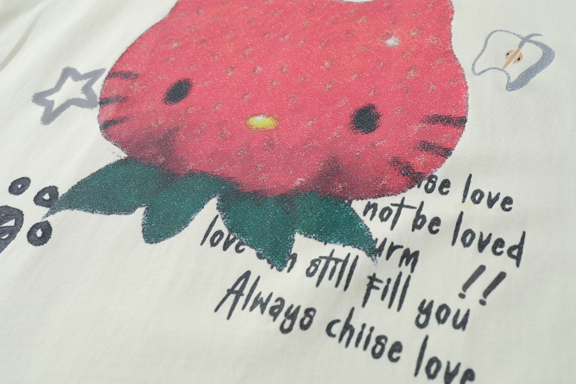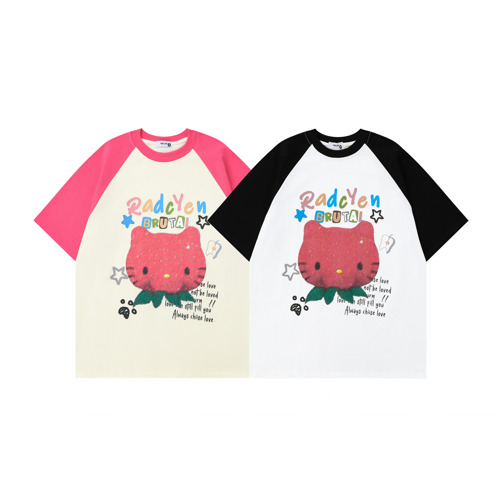웃긴 딸기 KT 고양이 대비 컬러 스티칭 프린트 티셔츠 남녀 올매치 오버 사이즈 커플 반팔 티셔츠스토어 가기