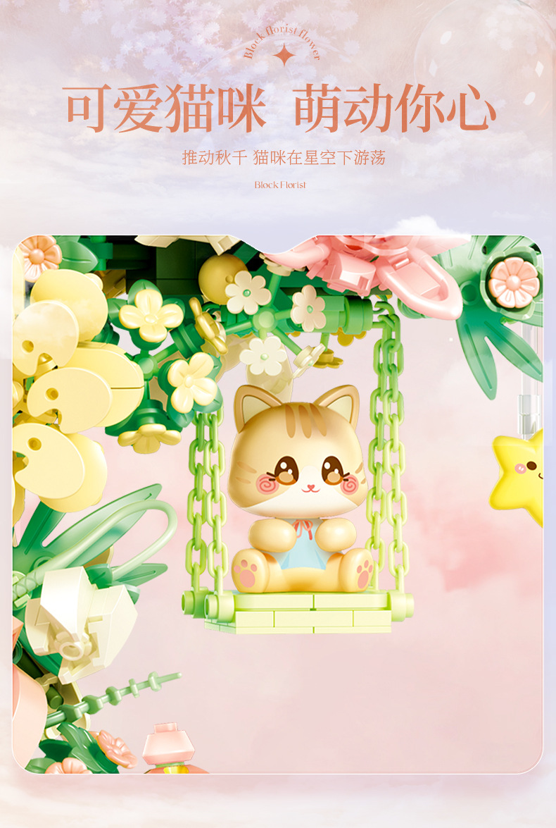 센바오 611082 빌딩 블록 꽃 꽃 퍼즐 빌딩 블록 아래 장난감 소녀 선물 조립 조명 도매스토어 가기