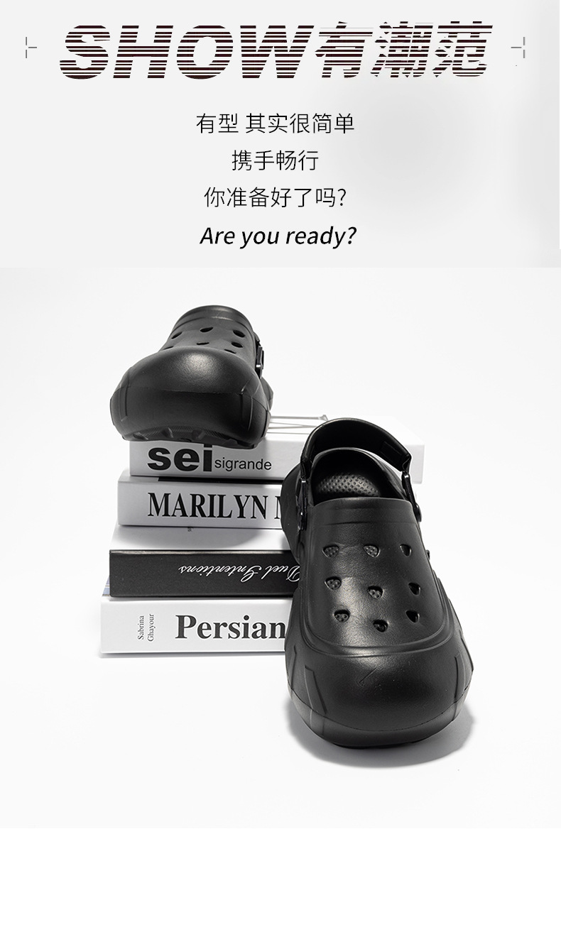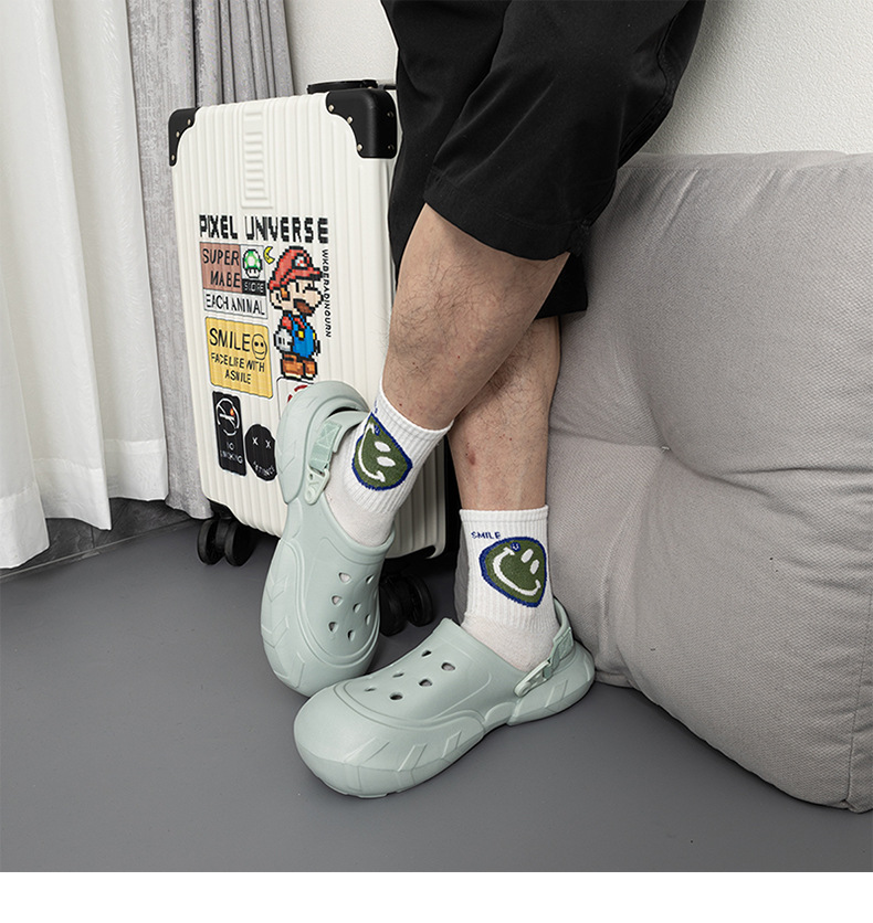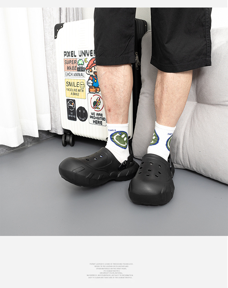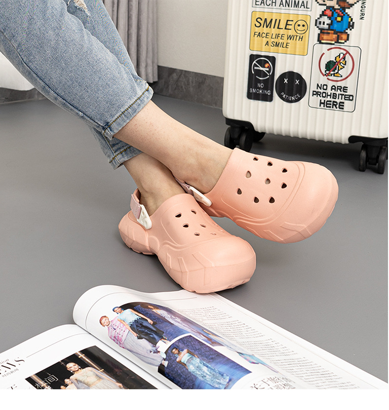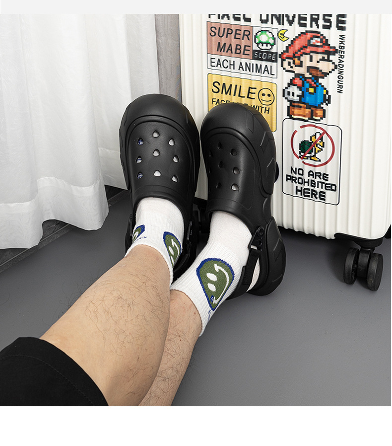 한국식 트렌디 한 커플 홀 신발 남성 여름 슬립 온 닫힌 발가락 슬리퍼 바깥 쪽 두꺼운 바닥 미끄럼 방지 비치 샌들