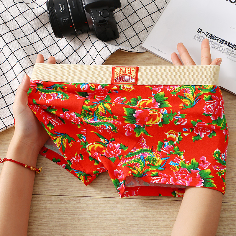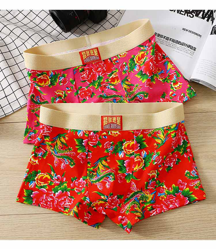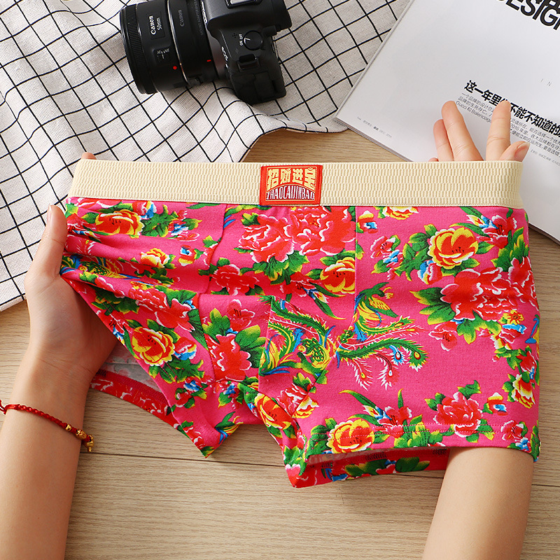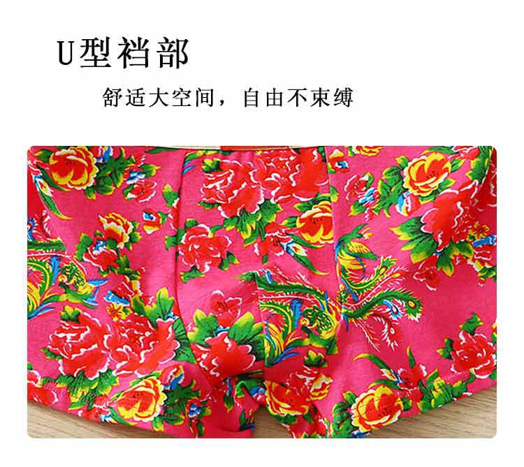 동북 큰 꽃 남성 속옷 순수 코튼 통기성 복서 팬티 유행 국가 스타일 꽃 복서 팬티 반바지 탑 바지