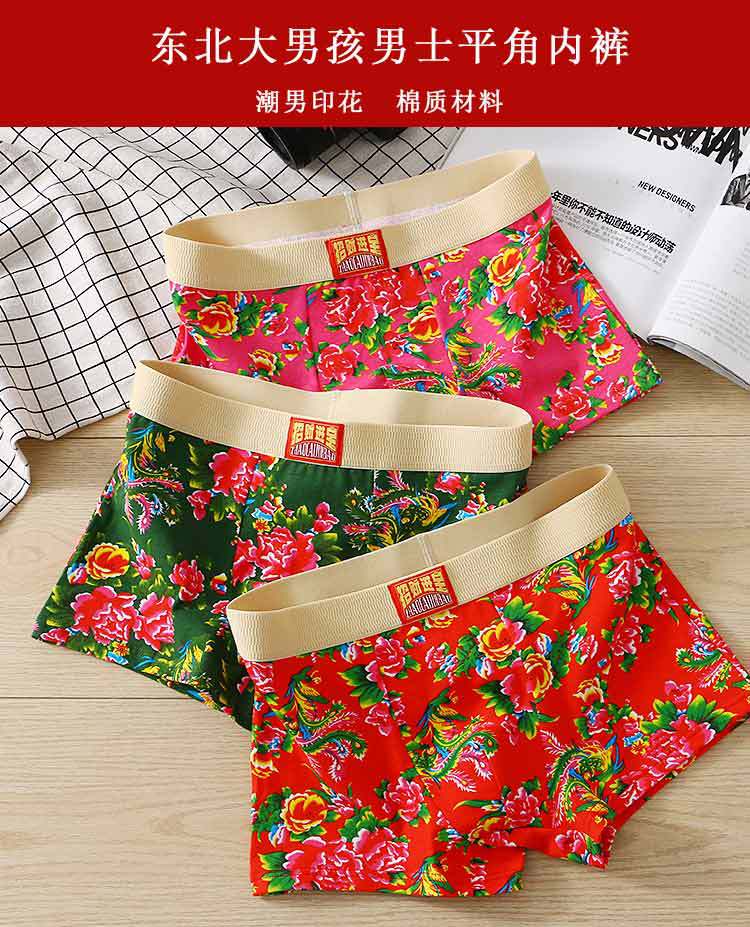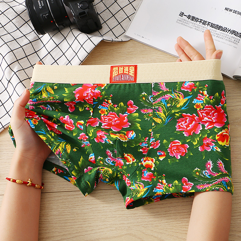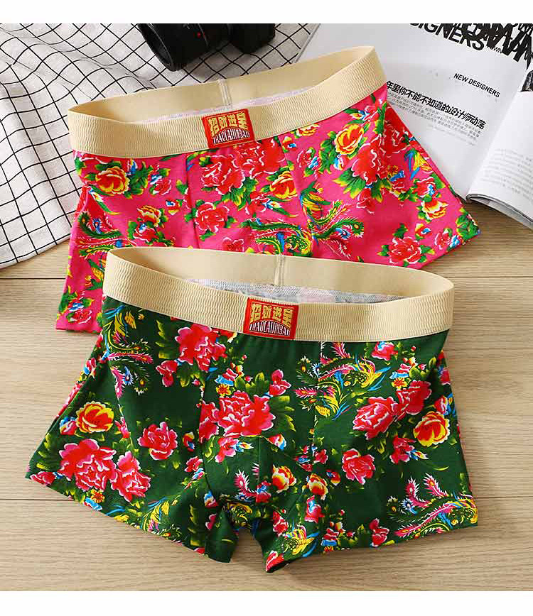동북 큰 꽃 남성 속옷 순수 코튼 통기성 복서 팬티 유행 국가 스타일 꽃 복서 팬티 반바지 탑 바지스토어 가기