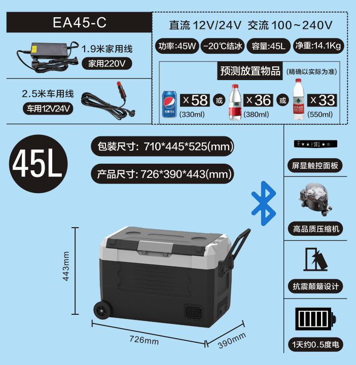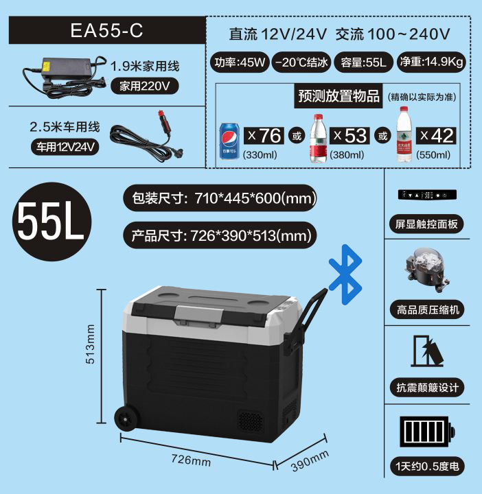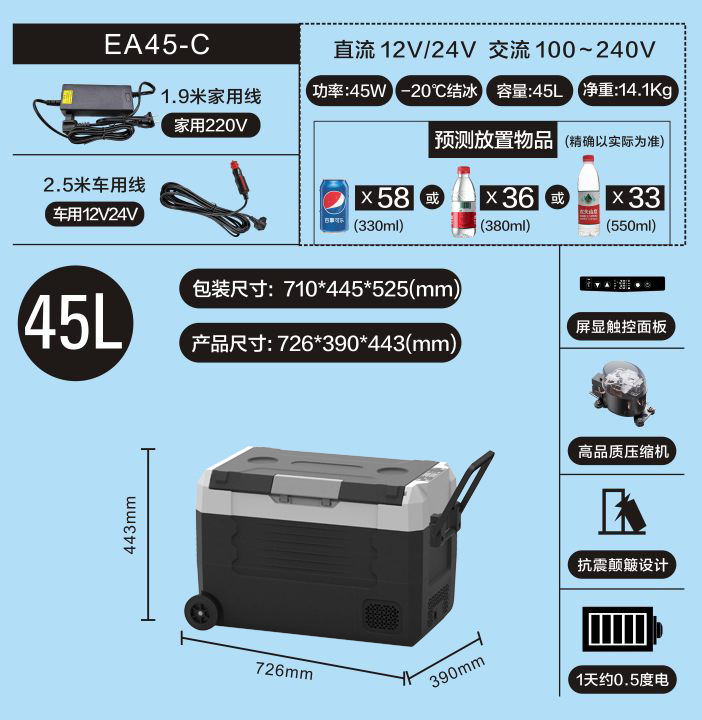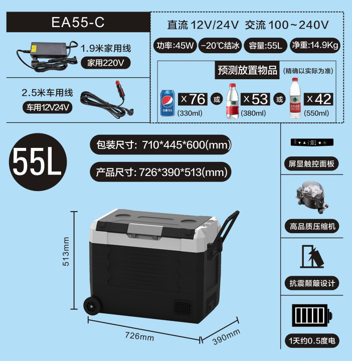 압축기 자동차 냉장고 35/45/55L 저소음 ≤35 데시벨 자동차 및 가정용 이중 용도 12v24v 국경 간 전용 공급스토어 가기