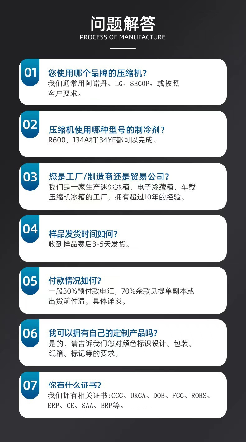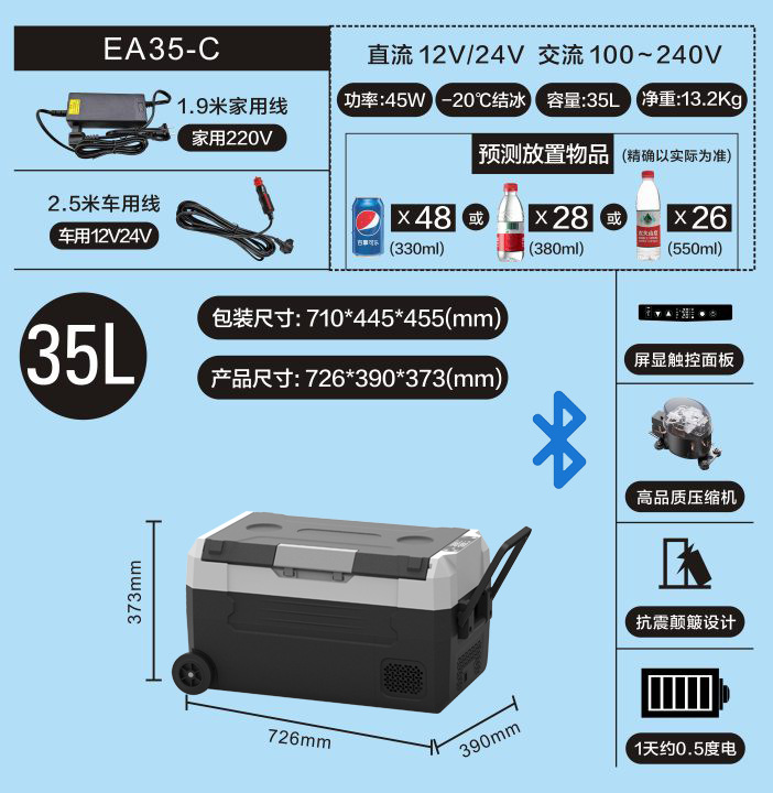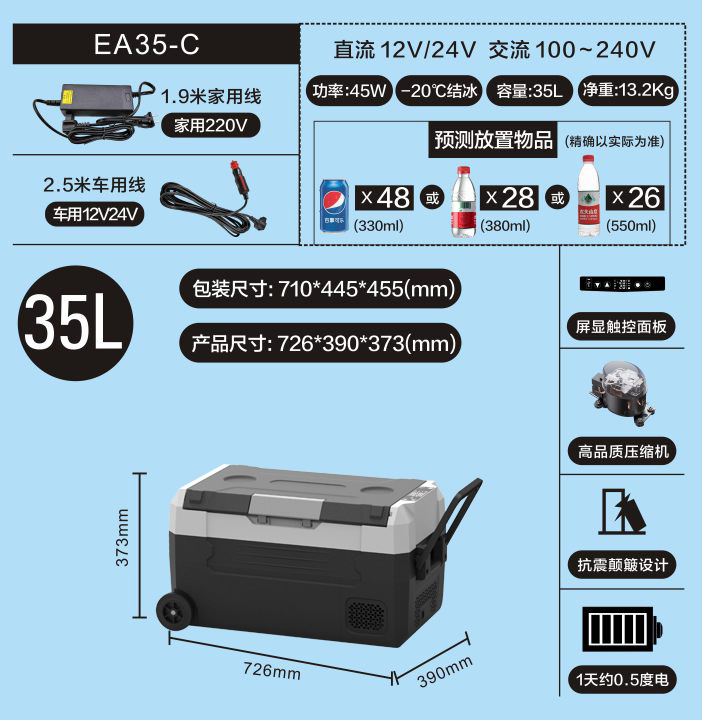 압축기 자동차 냉장고 35/45/55L 저소음 ≤35 데시벨 자동차 및 가정용 이중 용도 12v24v 국경 간 전용 공급
