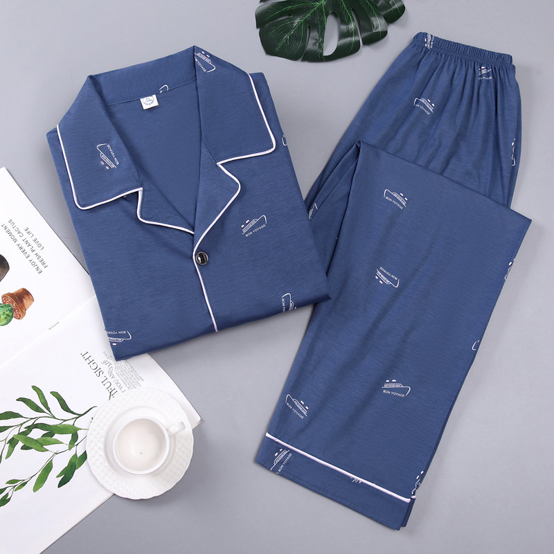 잠옷 남자 봄과 가을 100% 면화 긴팔 뉴 플러스 사이즈 여름 면화 가을과 겨울 겉옷 청소년 홈웨어스토어 가기