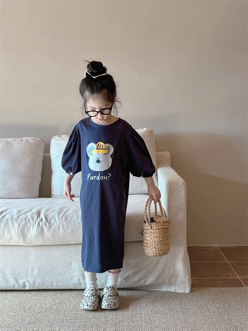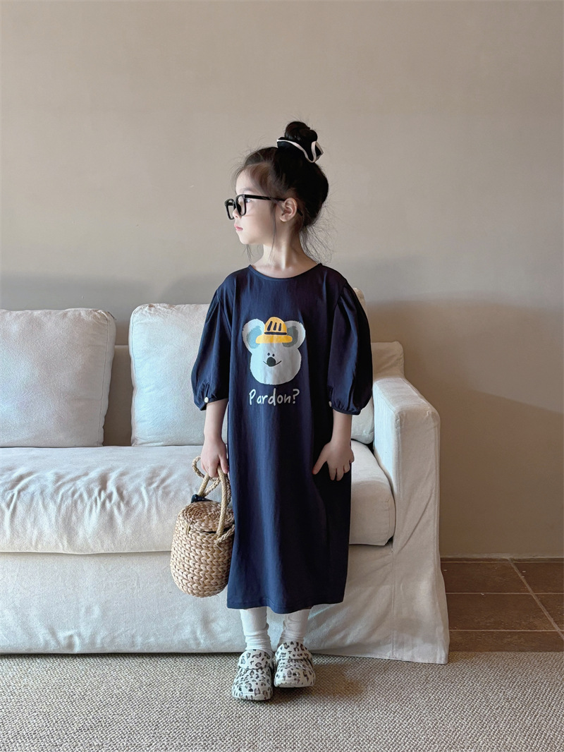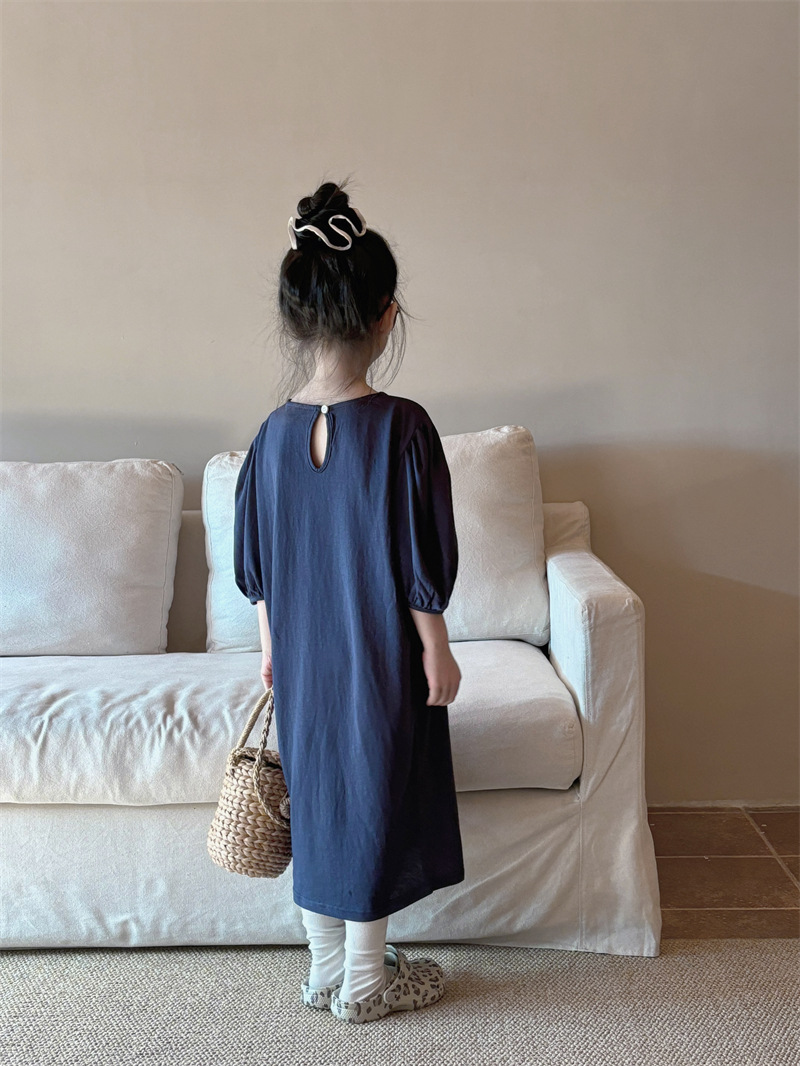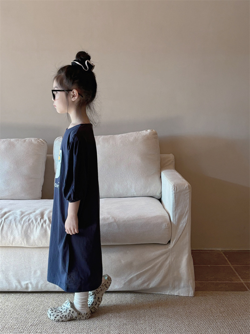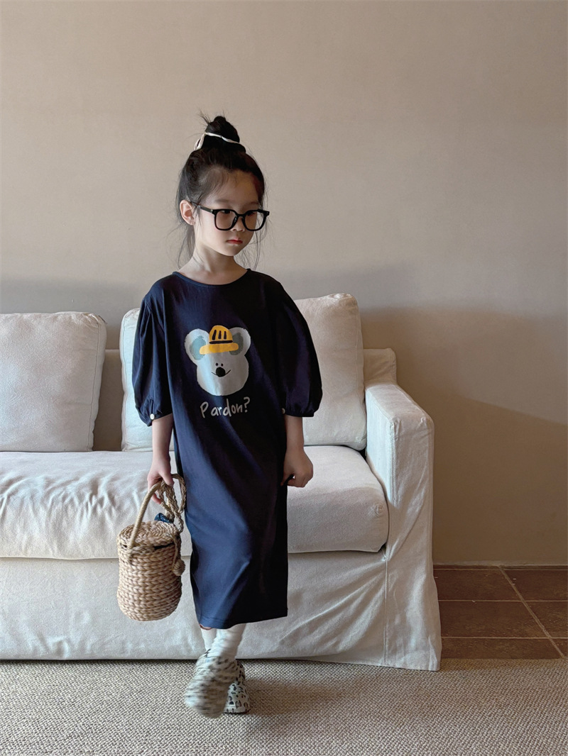 소녀 한국식 캐주얼 반팔 T 스커트 퍼프 소매 여름 새로운 스타일 어린이 서양식 스트레이트 스커트 패션 Q445