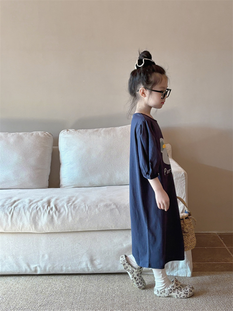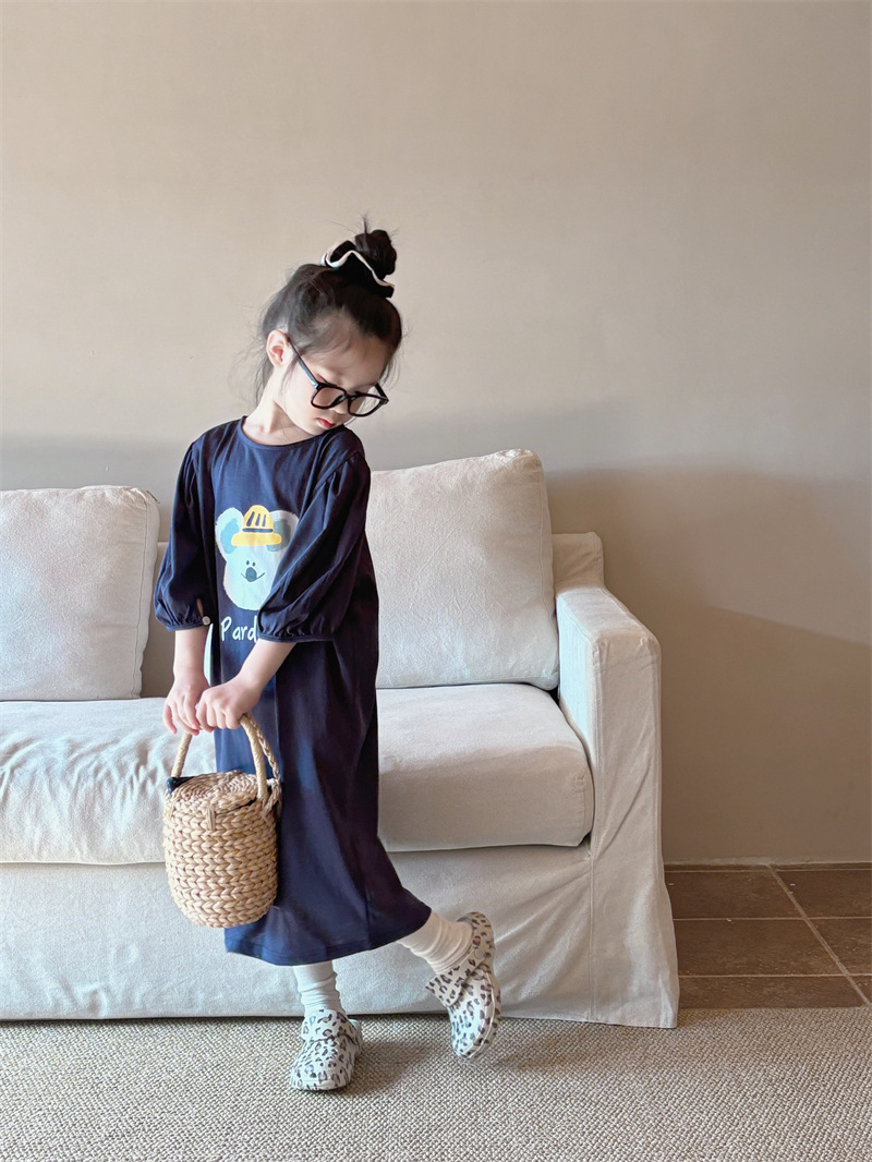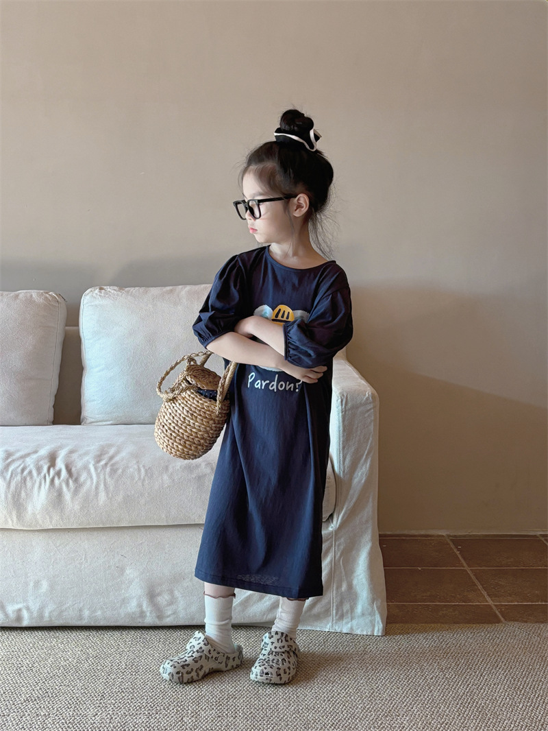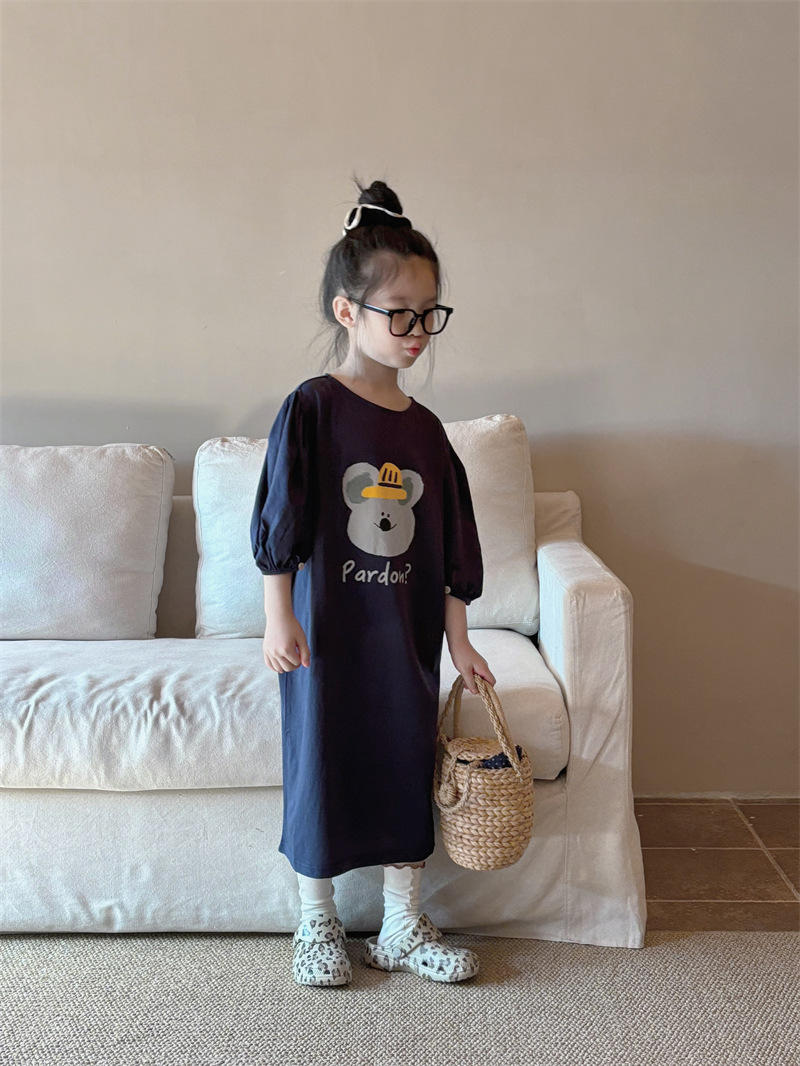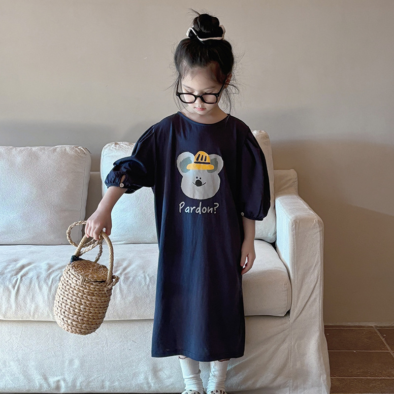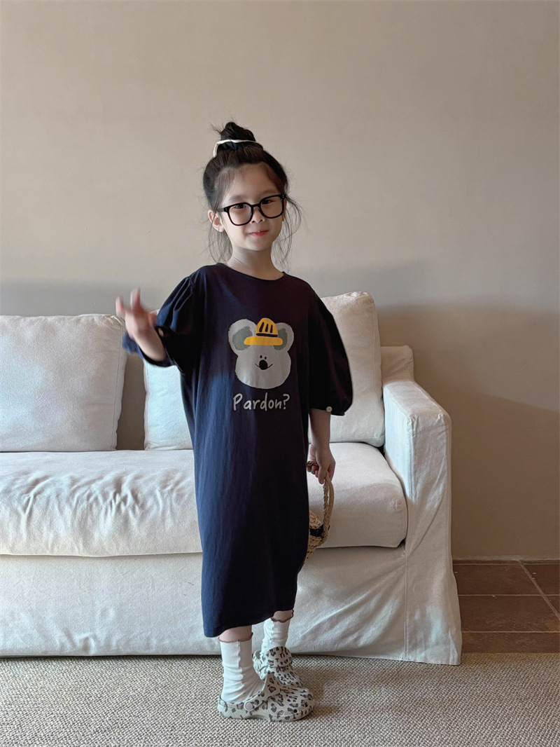 소녀 한국식 캐주얼 반팔 T 스커트 퍼프 소매 여름 새로운 스타일 어린이 서양식 스트레이트 스커트 패션 Q445