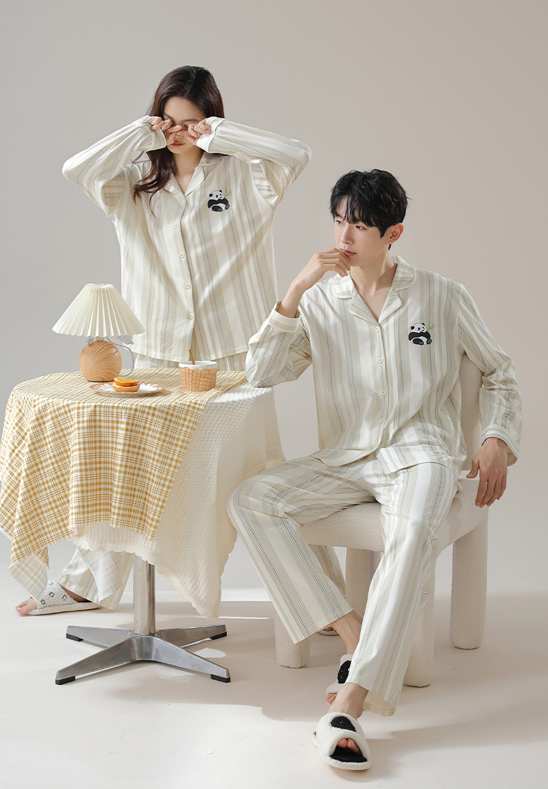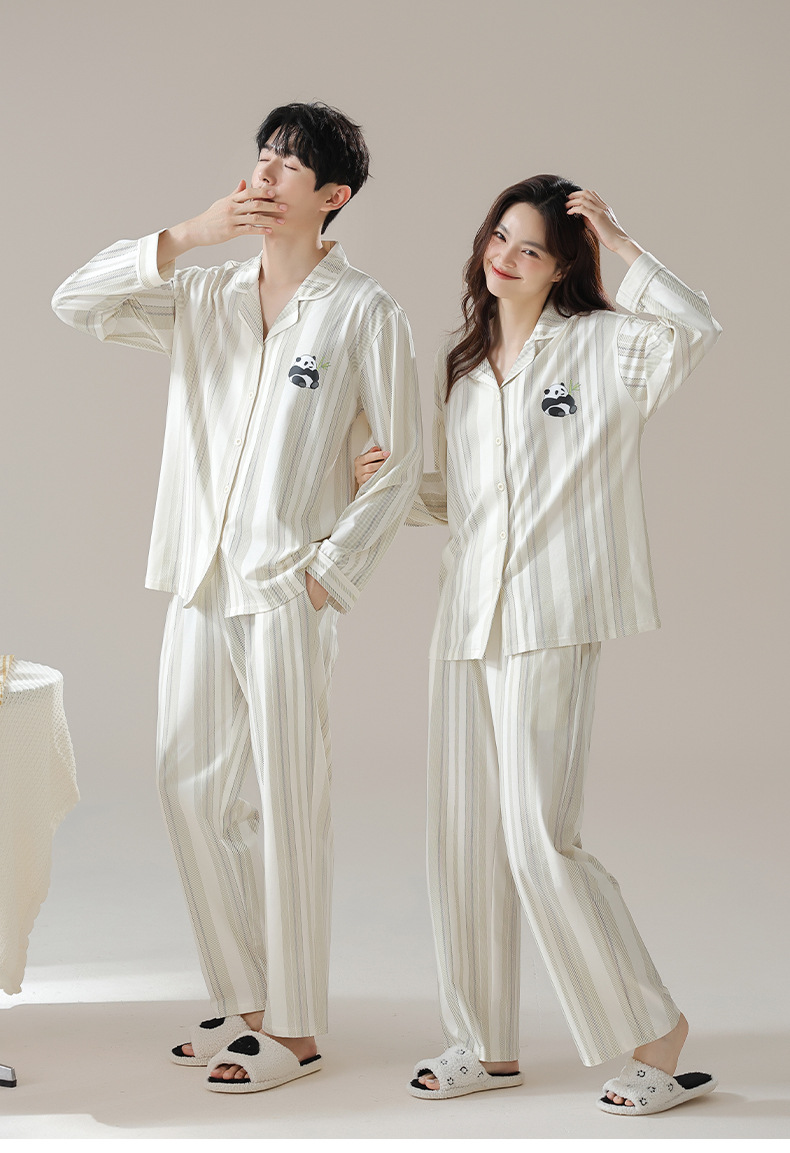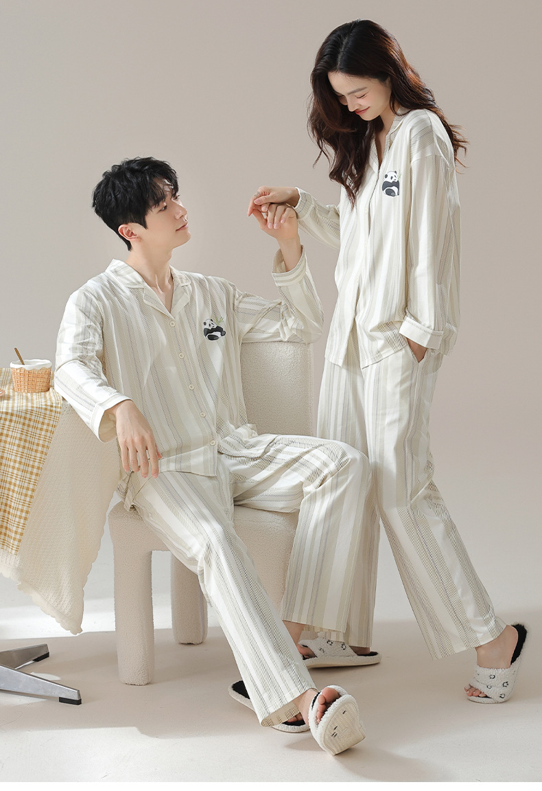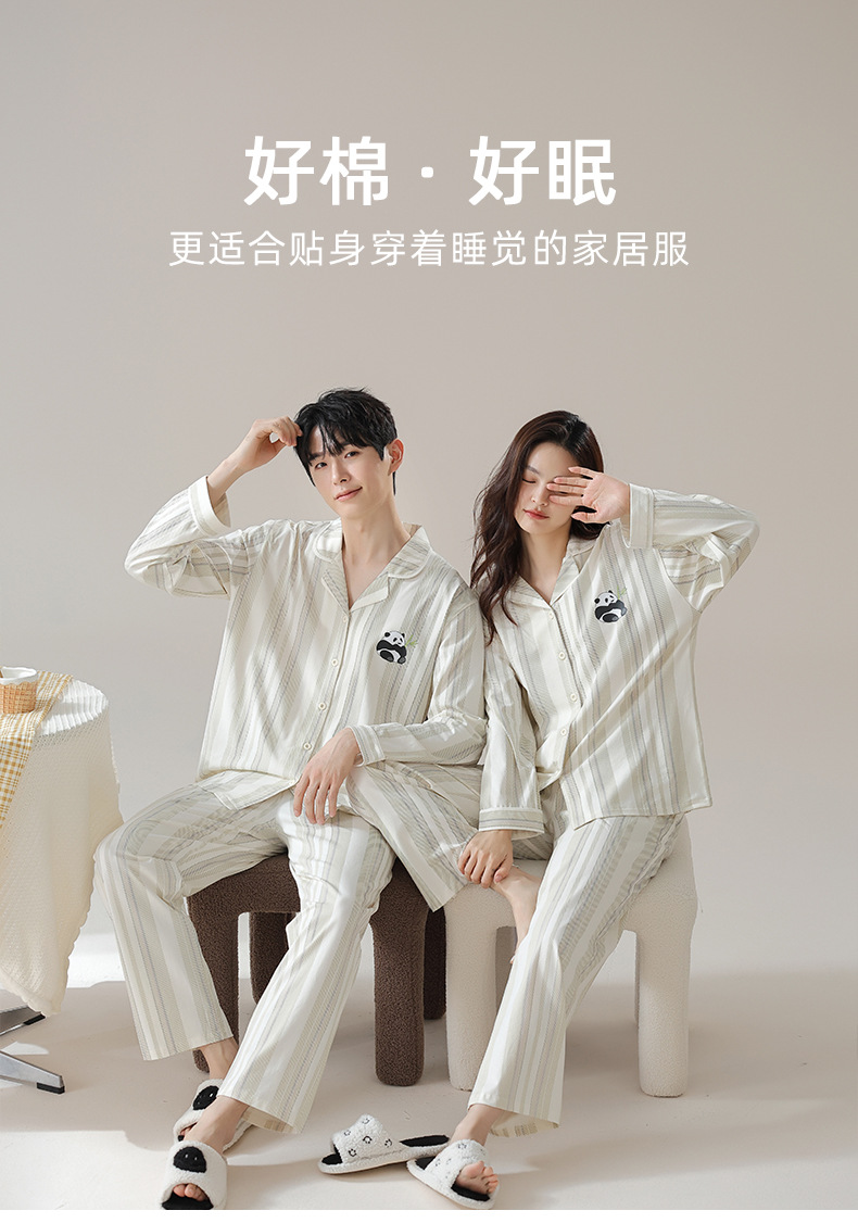 【항균 신장면】2025 신상 순면 커플 잠옷 여성 봄 가을 남성 홈웨어 세트스토어 가기