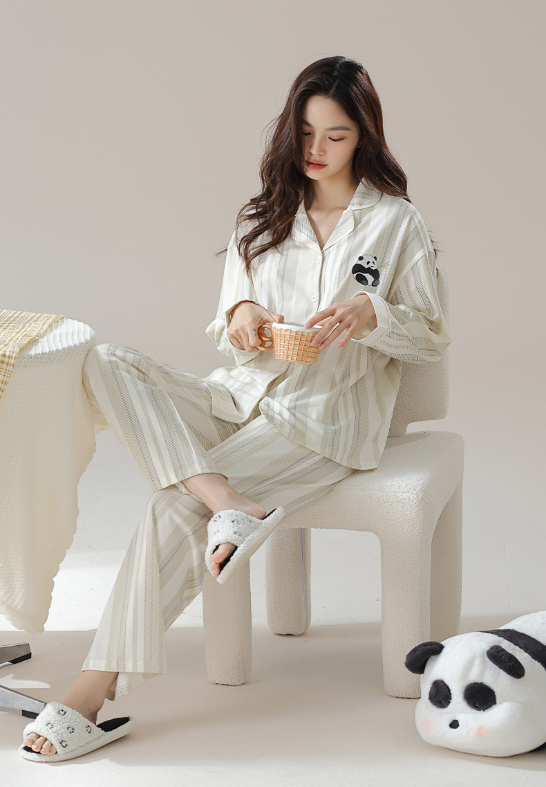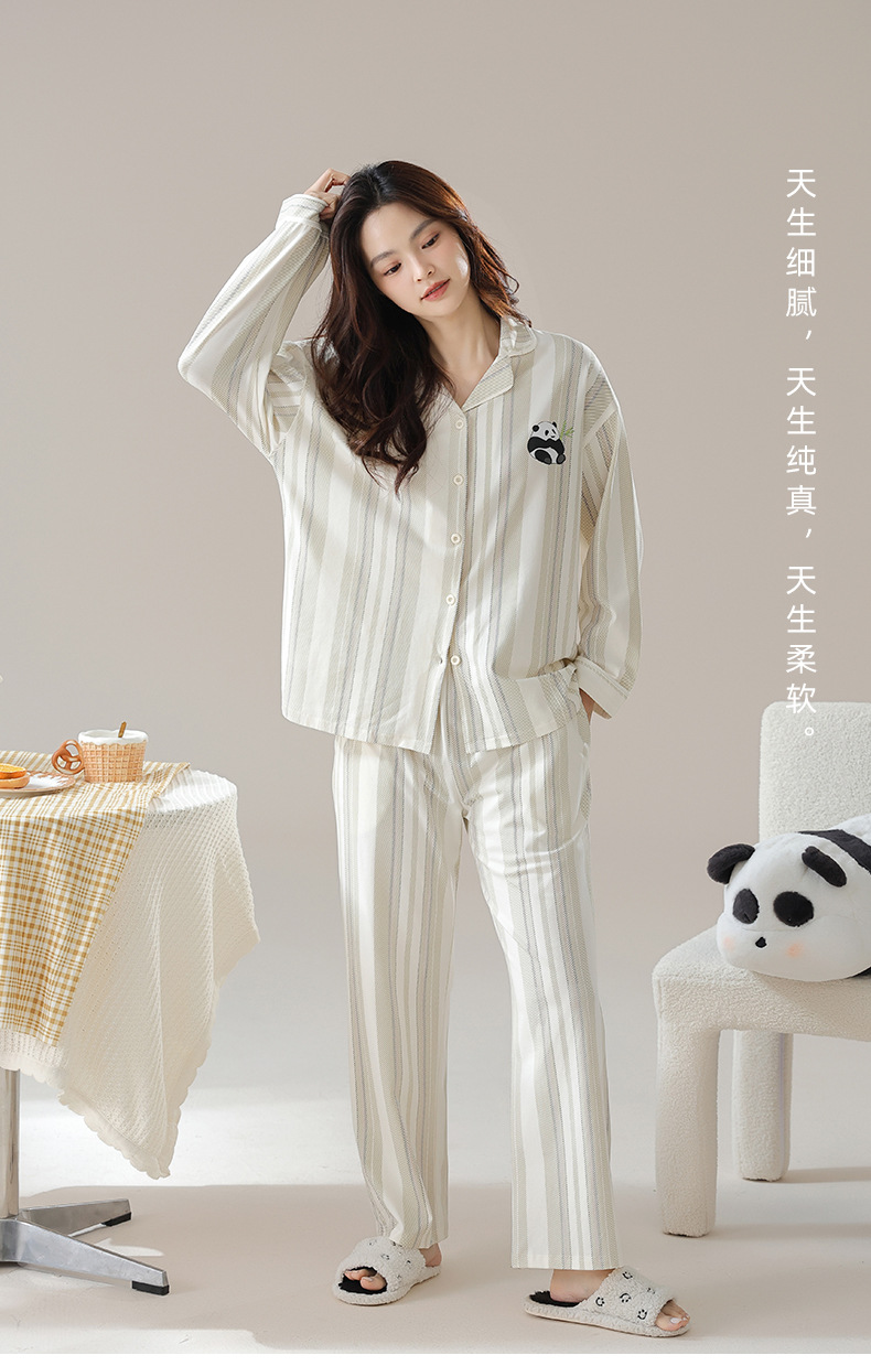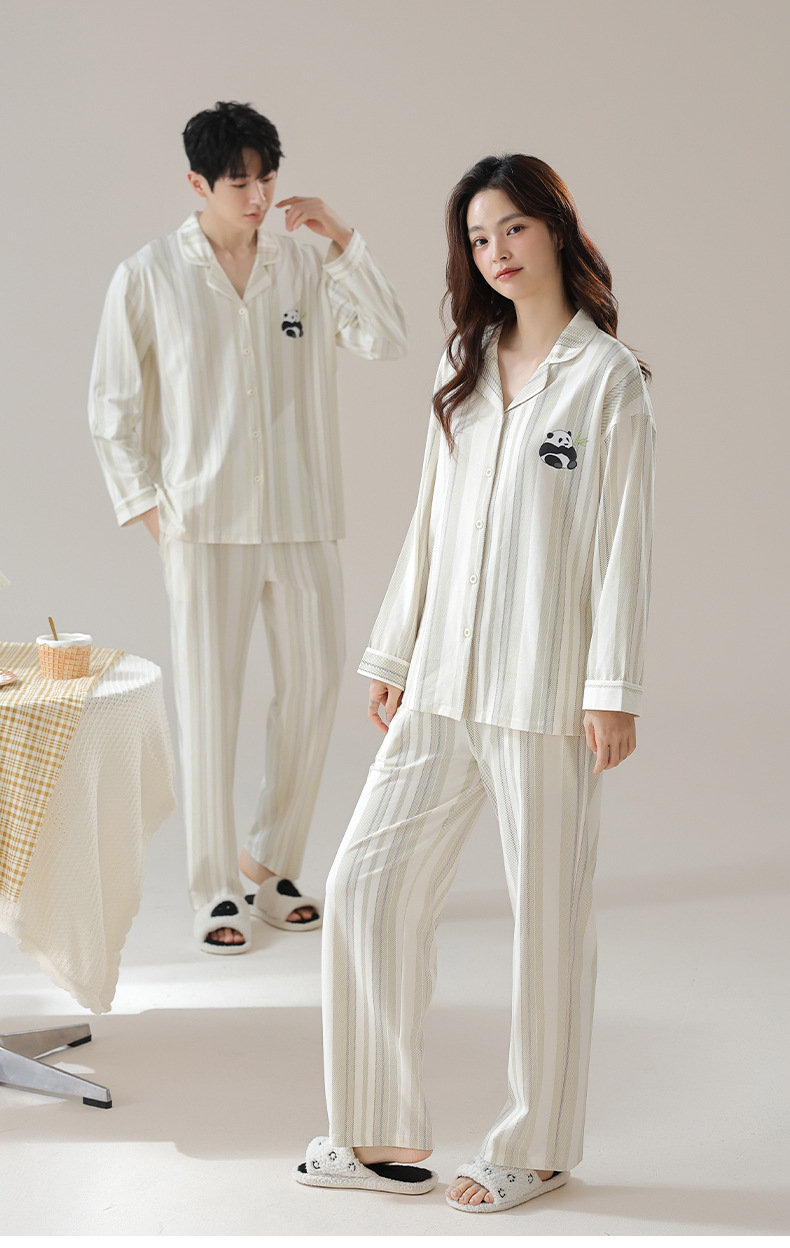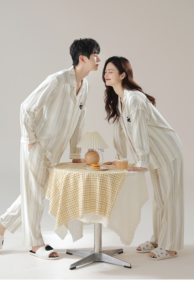 【항균 신장면】2025 신상 순면 커플 잠옷 여성 봄 가을 남성 홈웨어 세트스토어 가기