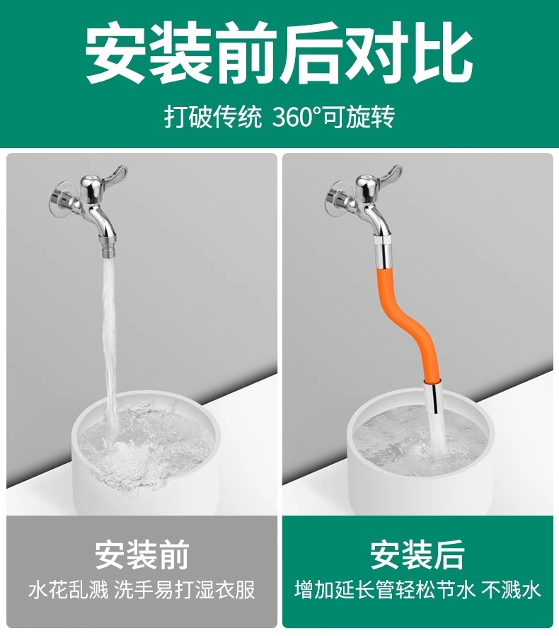 수도꼭지 익스텐더 유니버설 주방 욕실 스플래시 방지 물 유니버설 회전 가능한 유연한 연장 호스