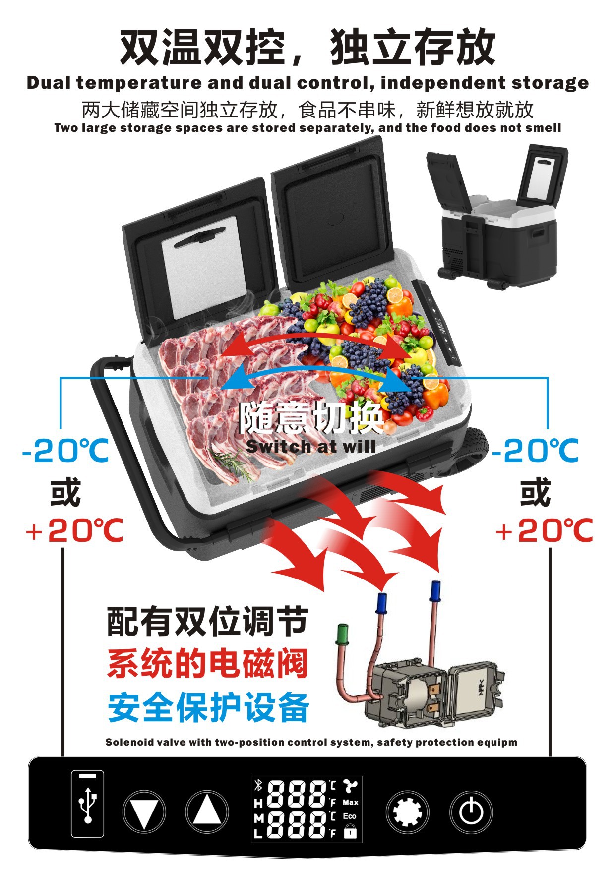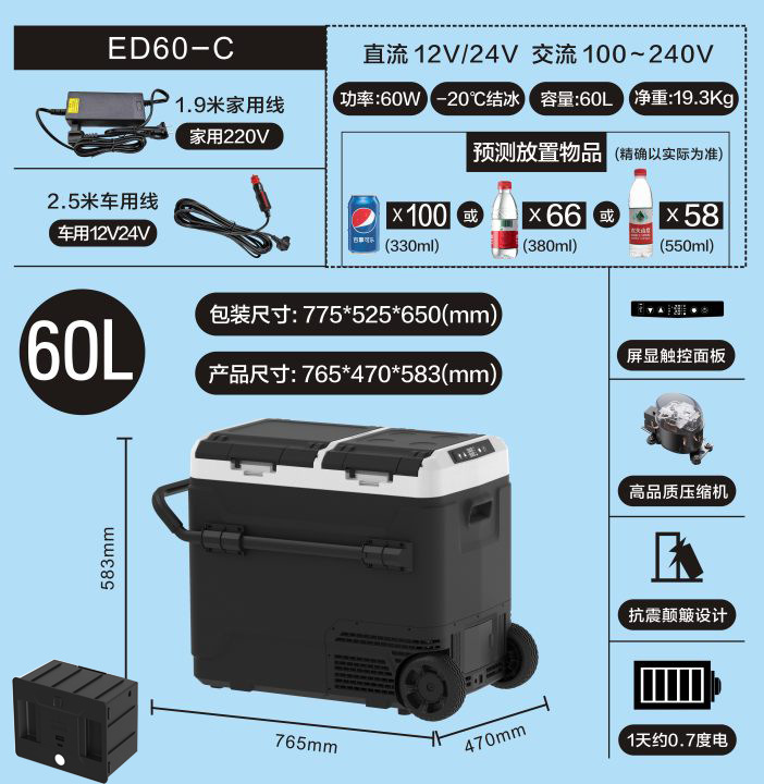 Amazon의 인기 있는 이중 상자 냉동 및 해동 12V 압축기 자동차 냉장고스토어 가기