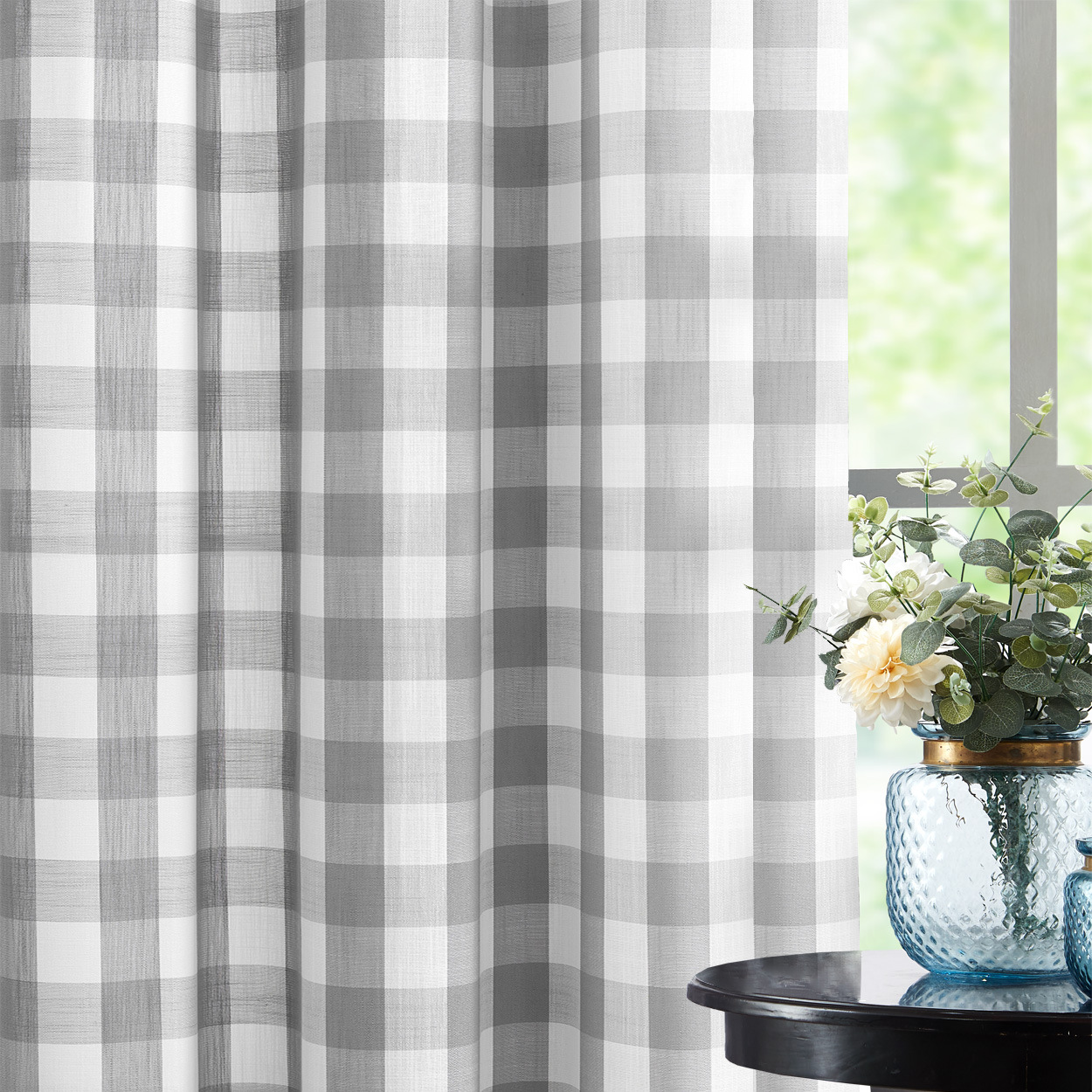 국경 커튼 스크린 회색 격자 무늬 커튼 스크린 링 거실 침실 목가적 인 컨트리 스타일에 적합