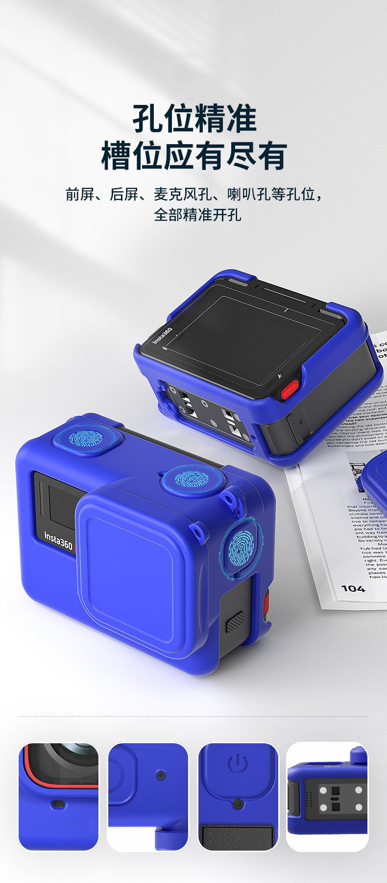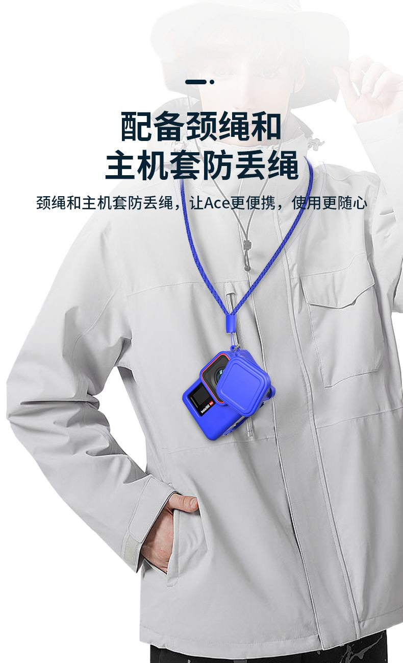 • 실리콘 케이스 블루, 렌즈 커버 및 끈 포함, 편안한 느낌과 본체 보호