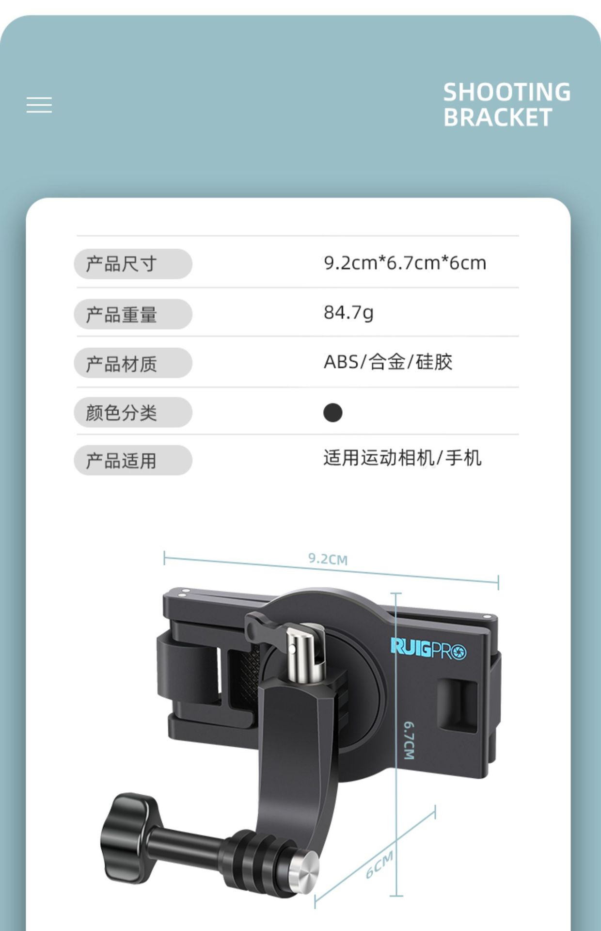 • 자동차 내부 및 외부 촬영용 흡입 컵 브래킷