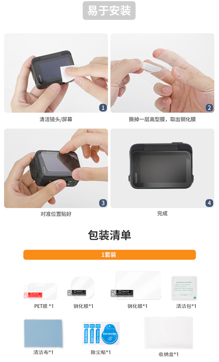 • 강화 필름 전면 스크린 + 스크린 + 렌즈 * 1 세트 방폭 및 방진