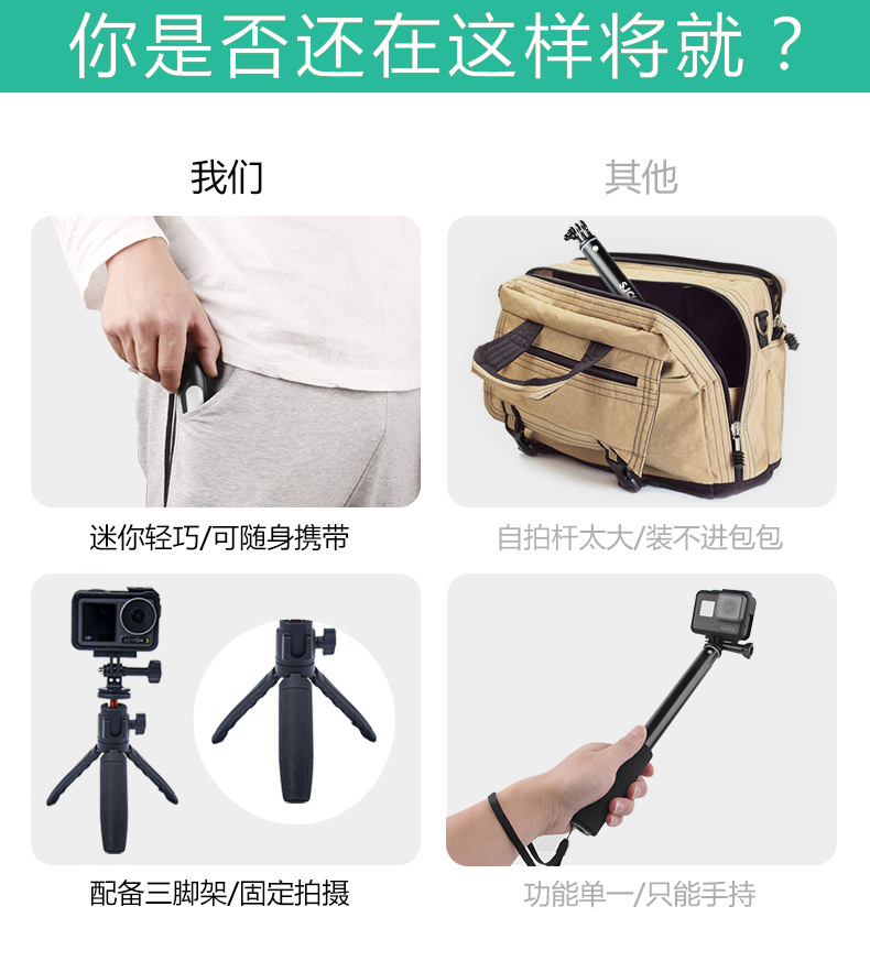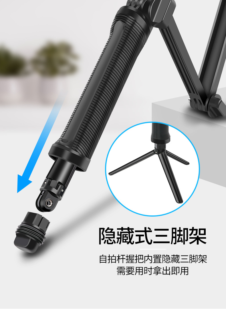 • 숨겨진 셀카봉에는 삼각대가 함께 제공됩니다(전체 길이 81cm).
