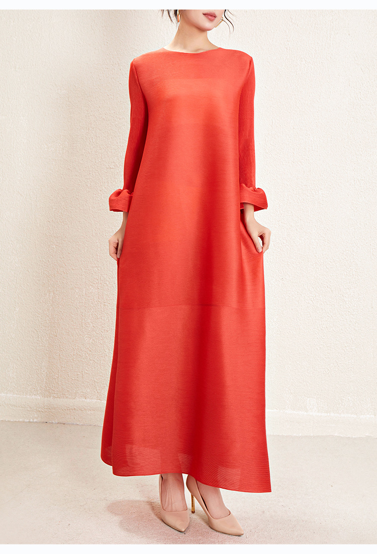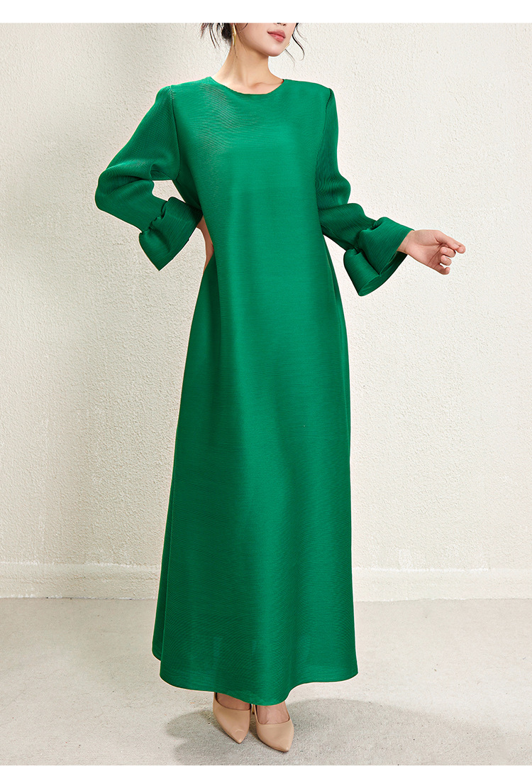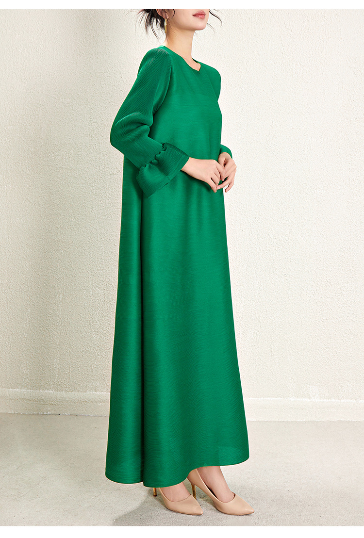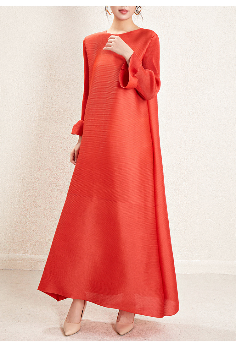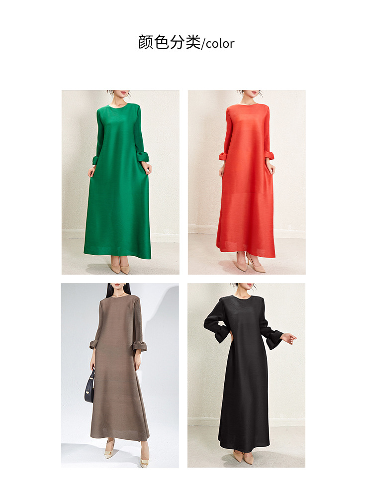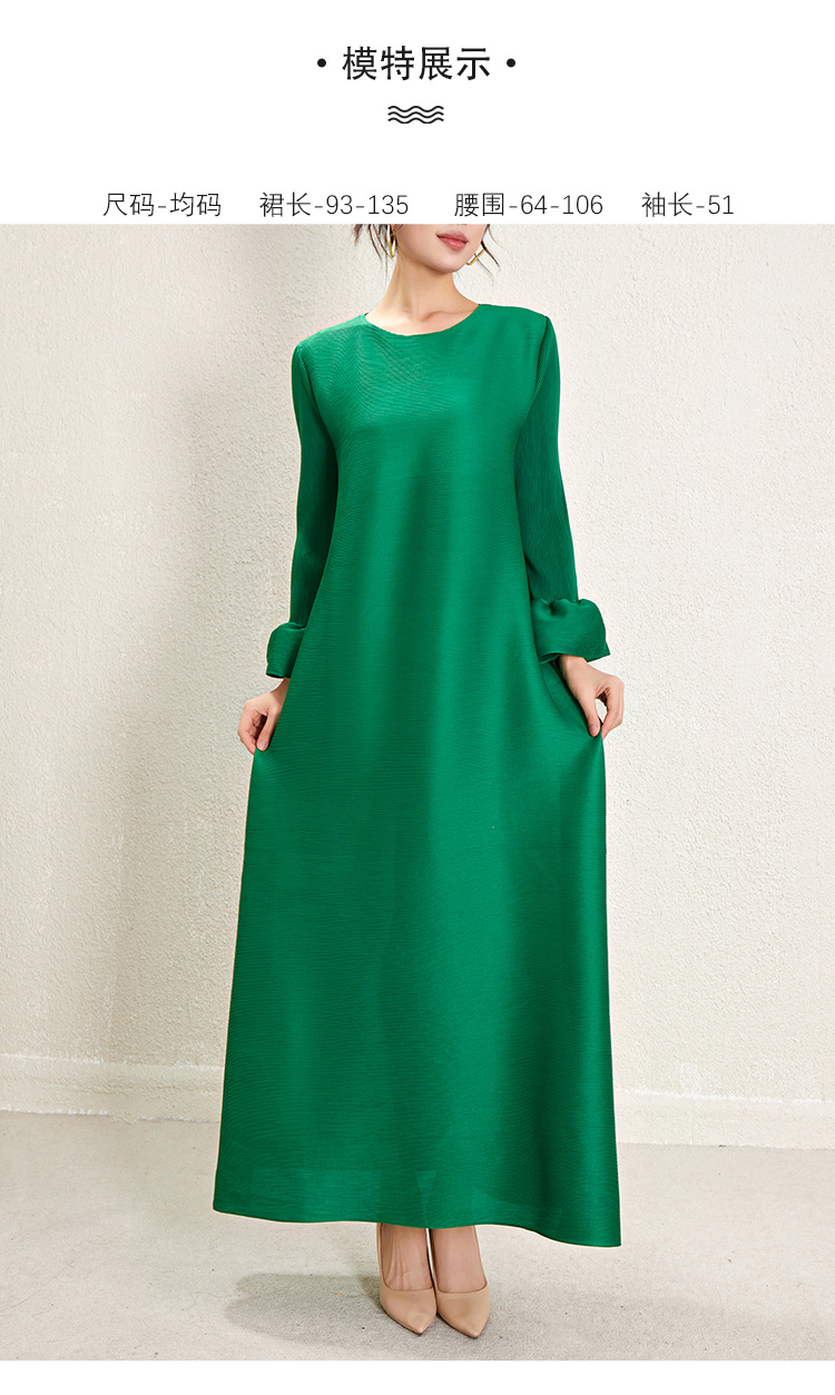 미야케 크로스보더 우아한 긴팔 원피스 여성 봄 신상품 큰 사이즈 통통한 여성용 드레이프 롱 드레스 패셔너블한 기품