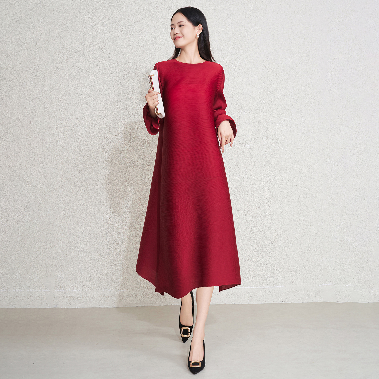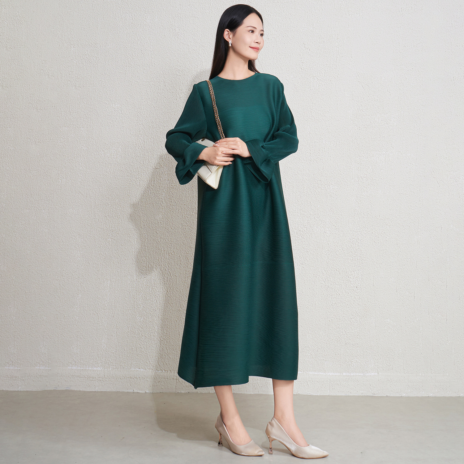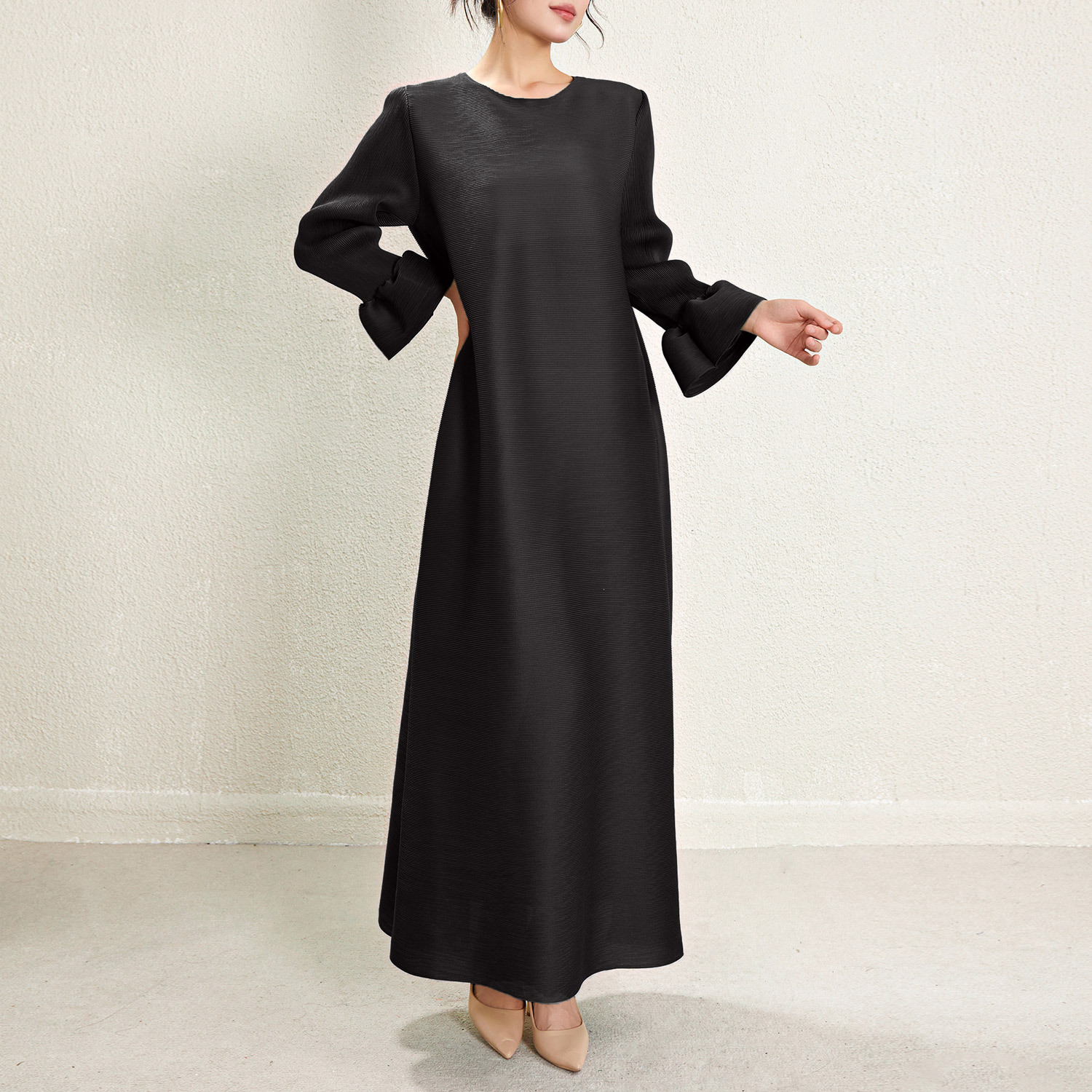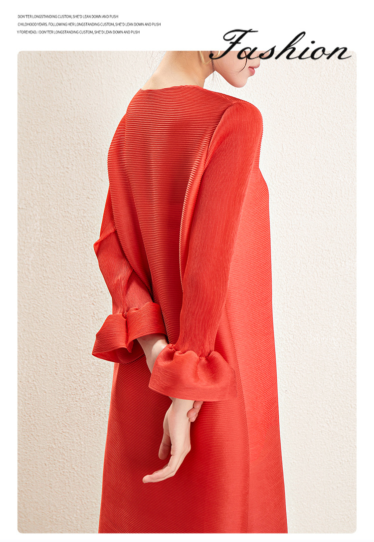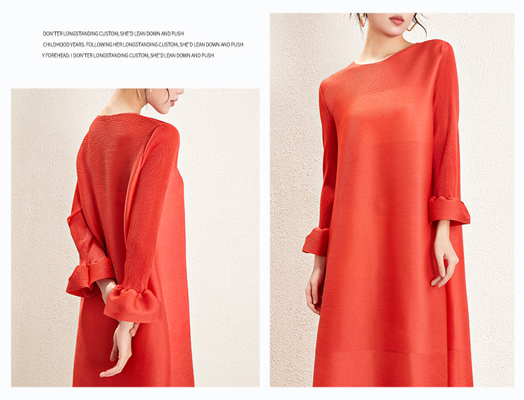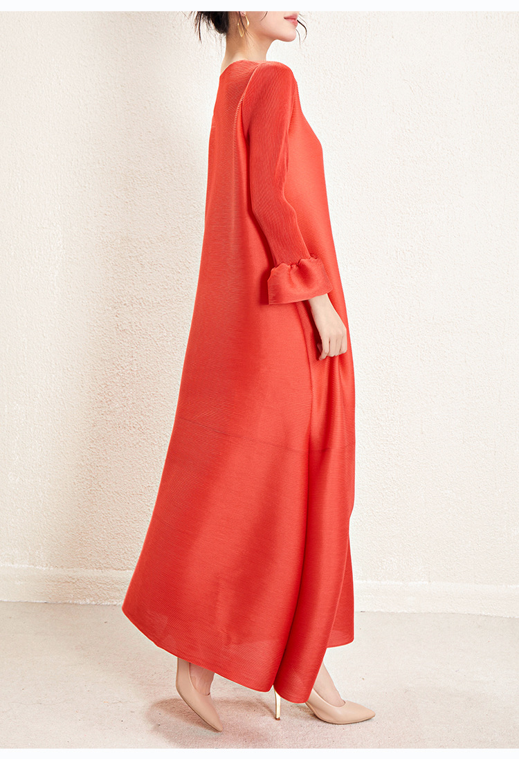 미야케 크로스보더 우아한 긴팔 원피스 여성 봄 신상품 큰 사이즈 통통한 여성용 드레이프 롱 드레스 패셔너블한 기품