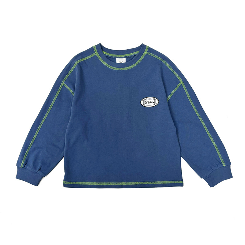 마오양 아동복 2024 봄 새 야구 스포츠 스타일 티셔츠 헤비 코튼 일본 잘 생긴 밝은 라인 긴팔 티셔츠스토어 가기