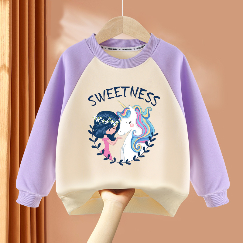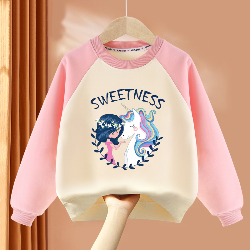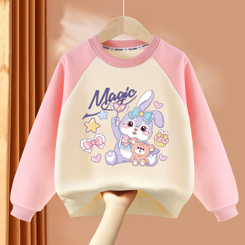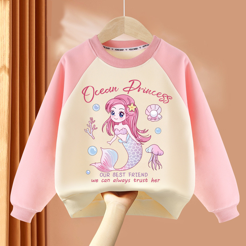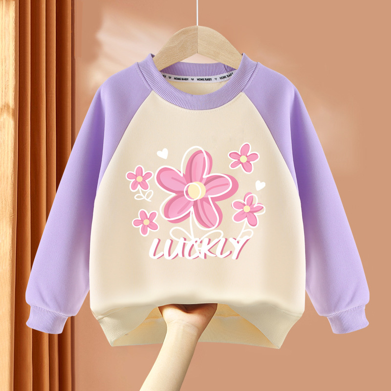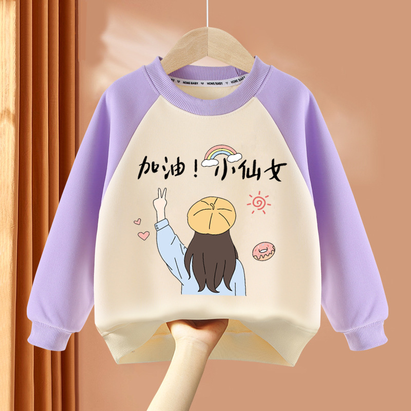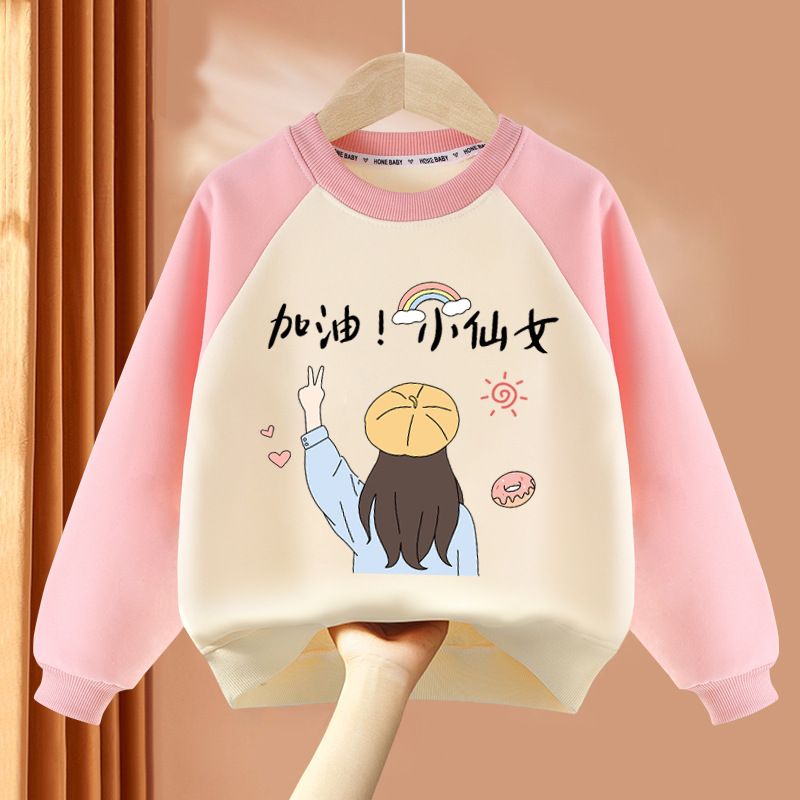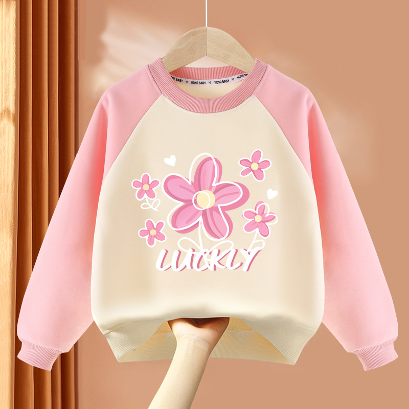 아동복 여아 스웨트 셔츠 봄, 가을 2025 봄 신상 아동 라운드 넥 탑 얇은 긴팔 봄 의류 여성 유행스토어 가기