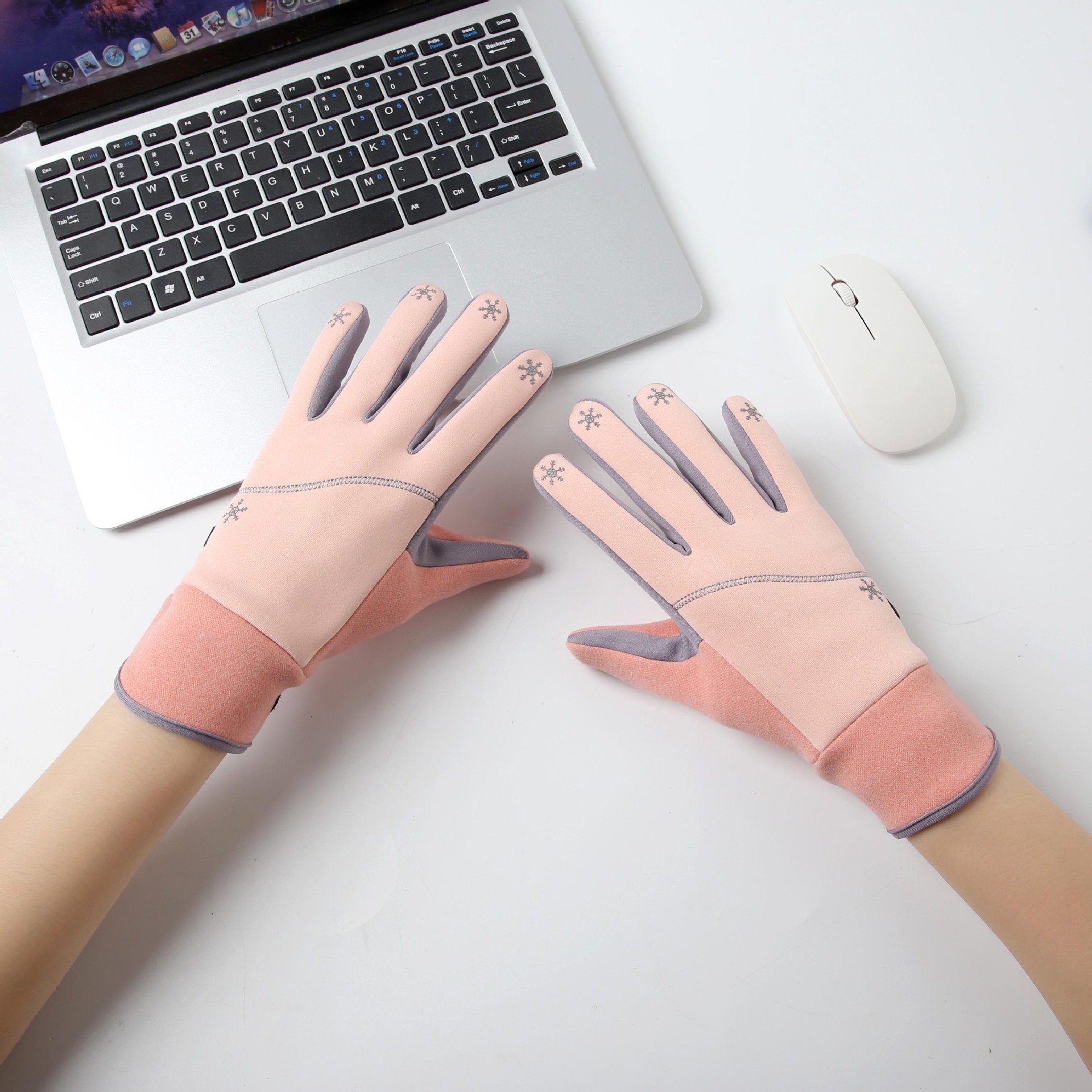 가을 겨울용 플리스 안감 보온 장갑 여성용 야외 스포츠 방한 터치스크린 장갑 운전, 자전거 타기, 스키 겨울 보온