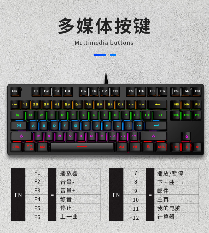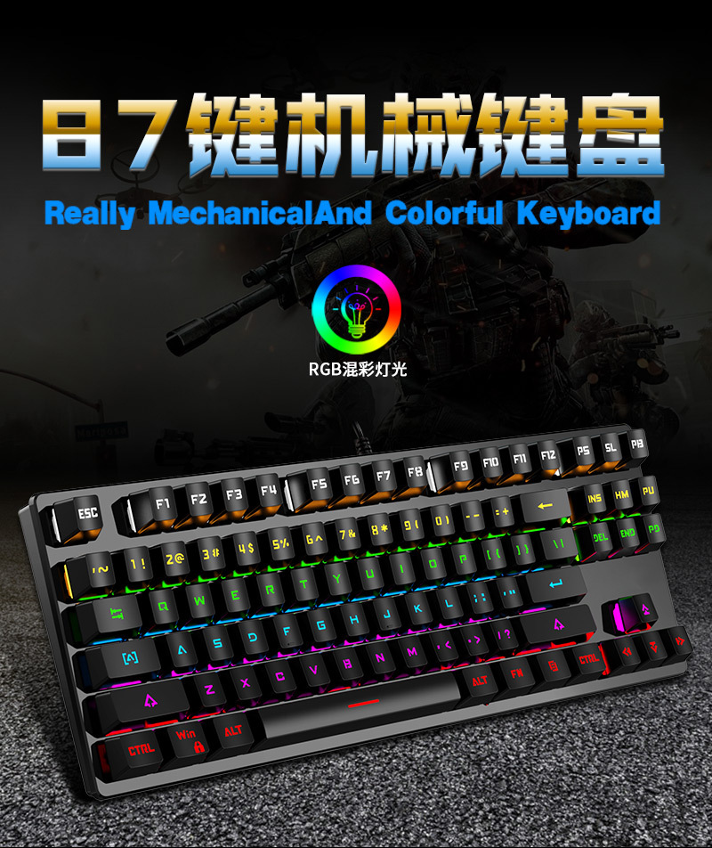 러시아어 K7 기계식 키보드 87키 러시아어 게임용 키보드 러시아어 컴퓨터 유선 키보드