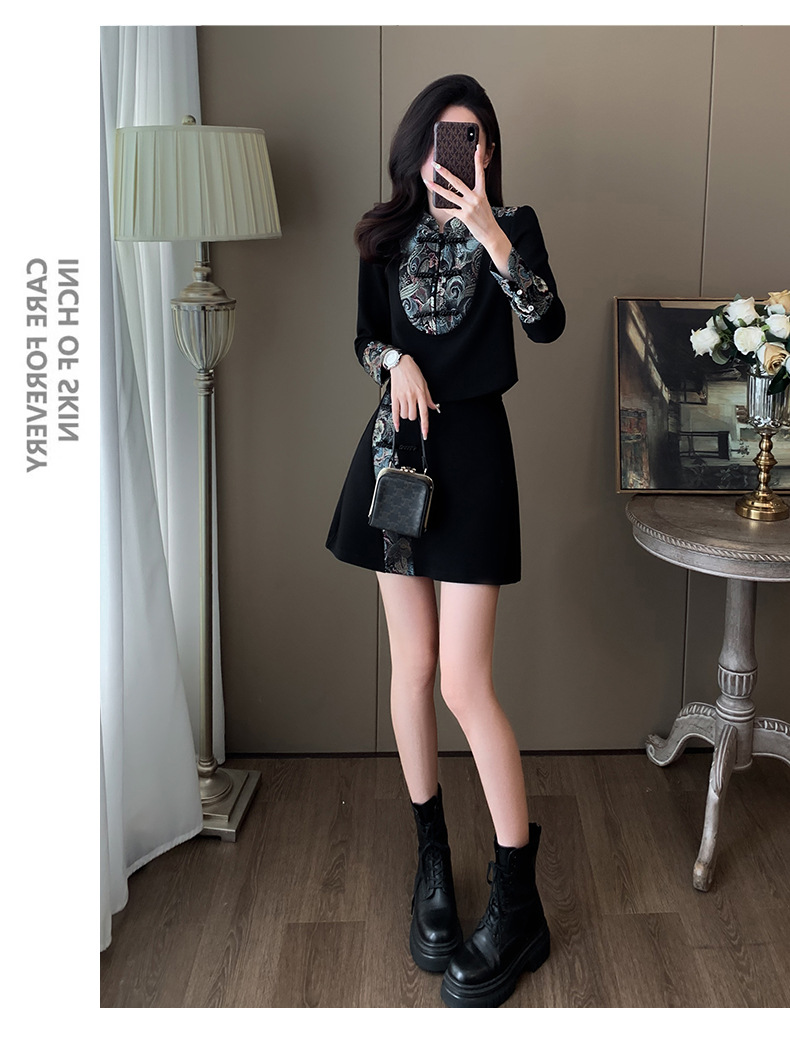 2024 새로운 여성 의류 중국 스타일 패션 세트 스커트 봄 슬리밍 우아한 고급 짧은 스커트 투피스 세트