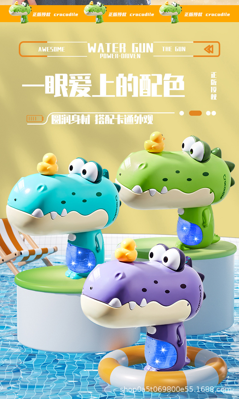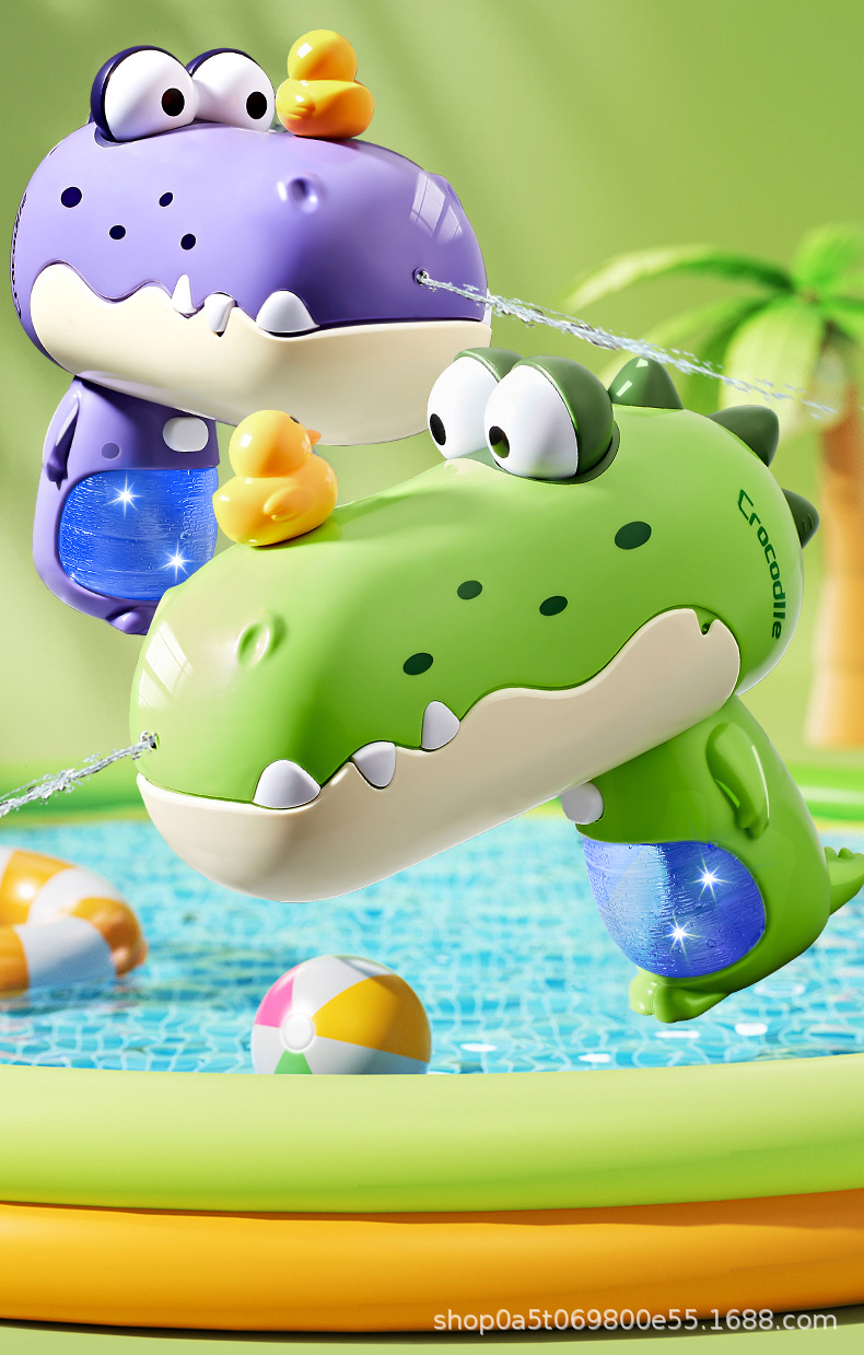한한 악어 전기 물총 높은 표정의 소년 소녀 어린이 여름 장난감 배낭 물 싸움스토어 가기