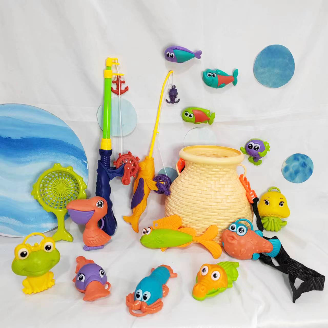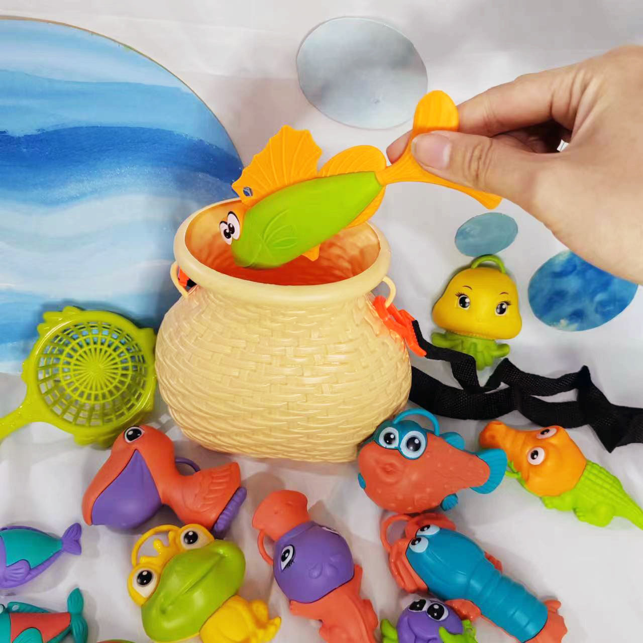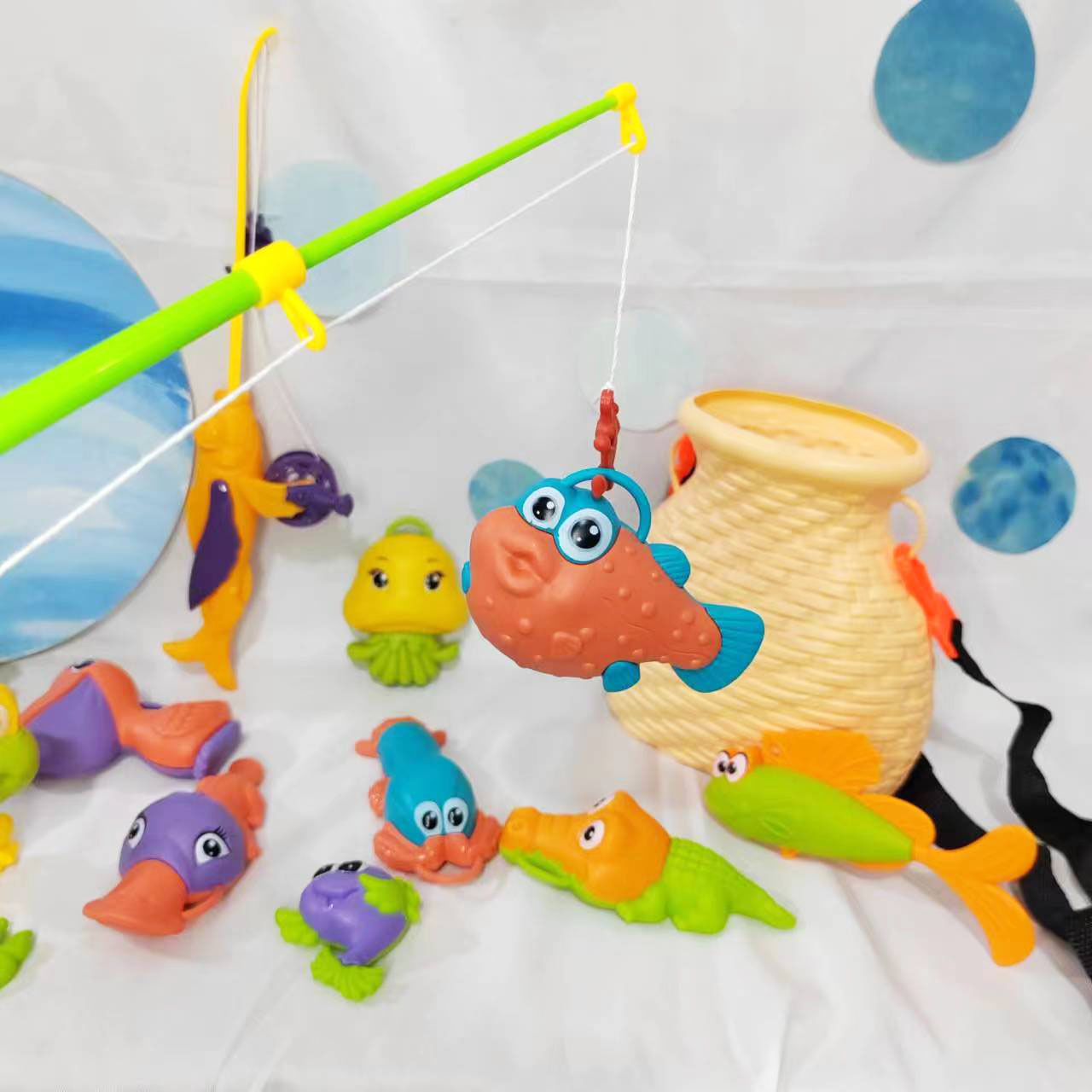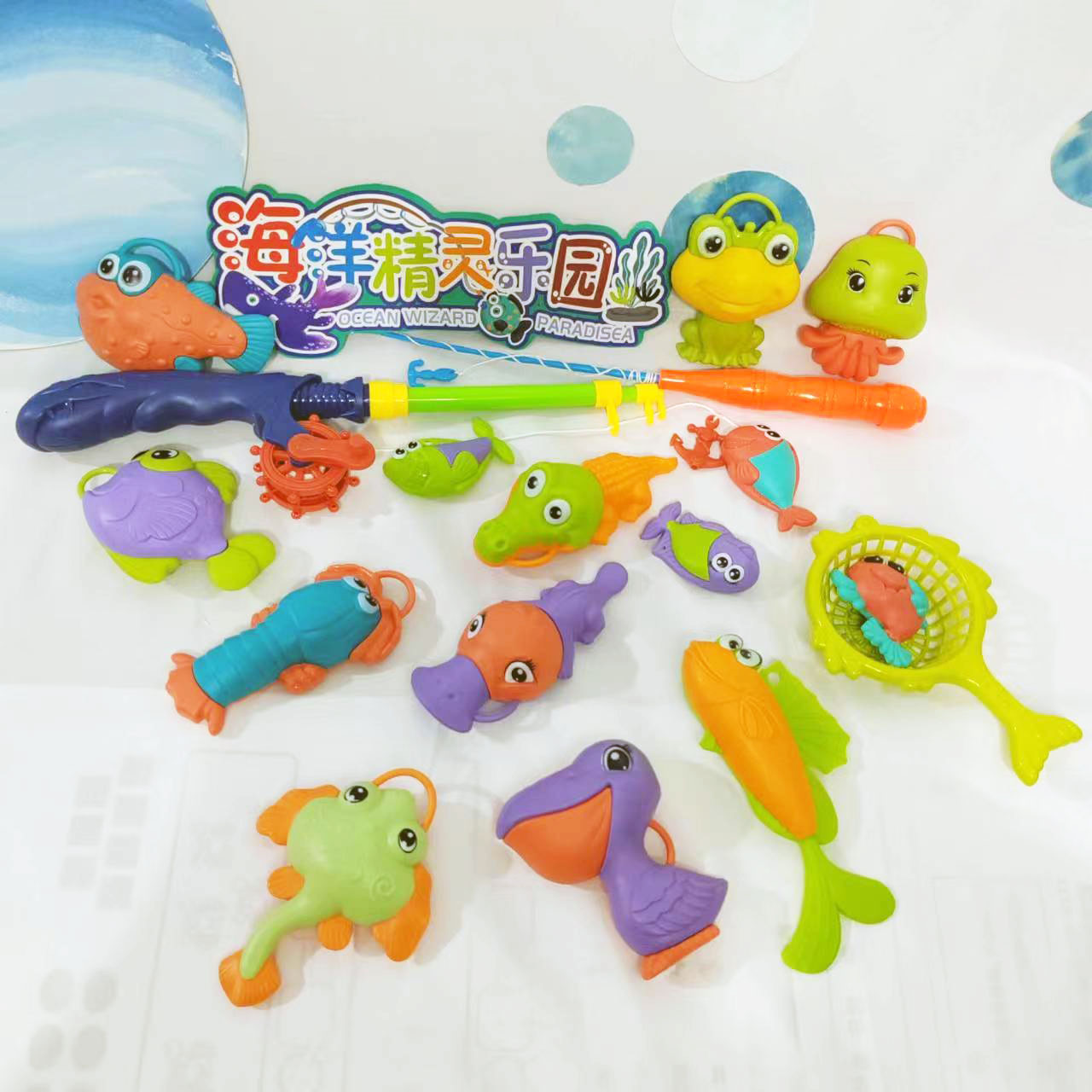 어린이 실내 및 실외 해변 놀이 물 만화 재미있는 낚시 세트 아기 목욕 퍼즐 놀이 집 마구간 장난감