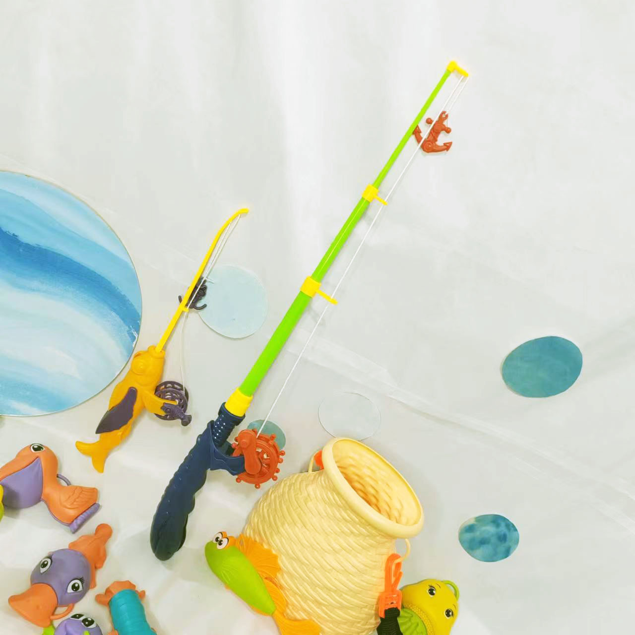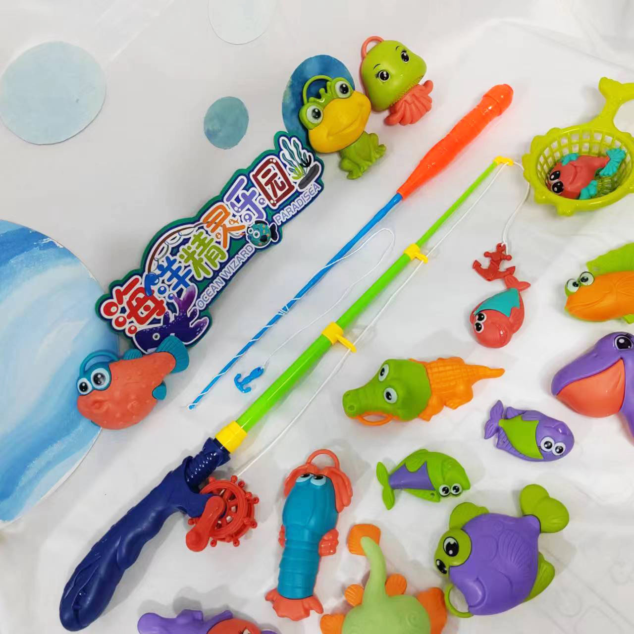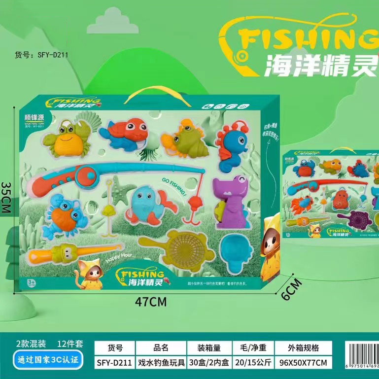 어린이 실내 및 실외 해변 놀이 물 만화 재미있는 낚시 세트 아기 목욕 퍼즐 놀이 집 마구간 장난감스토어 가기