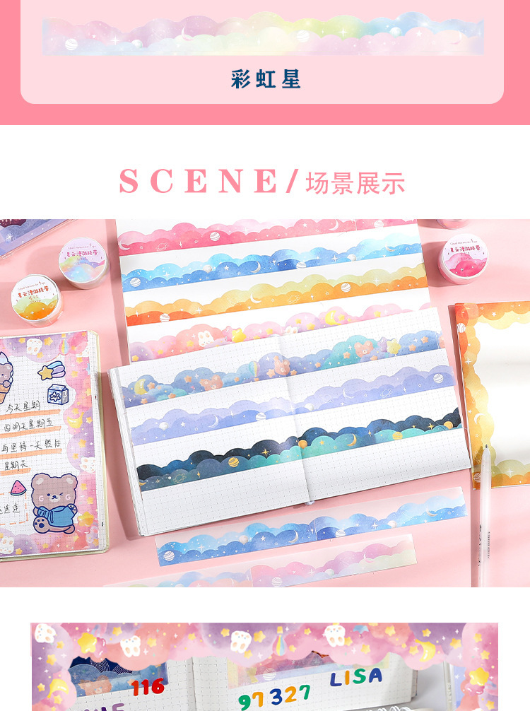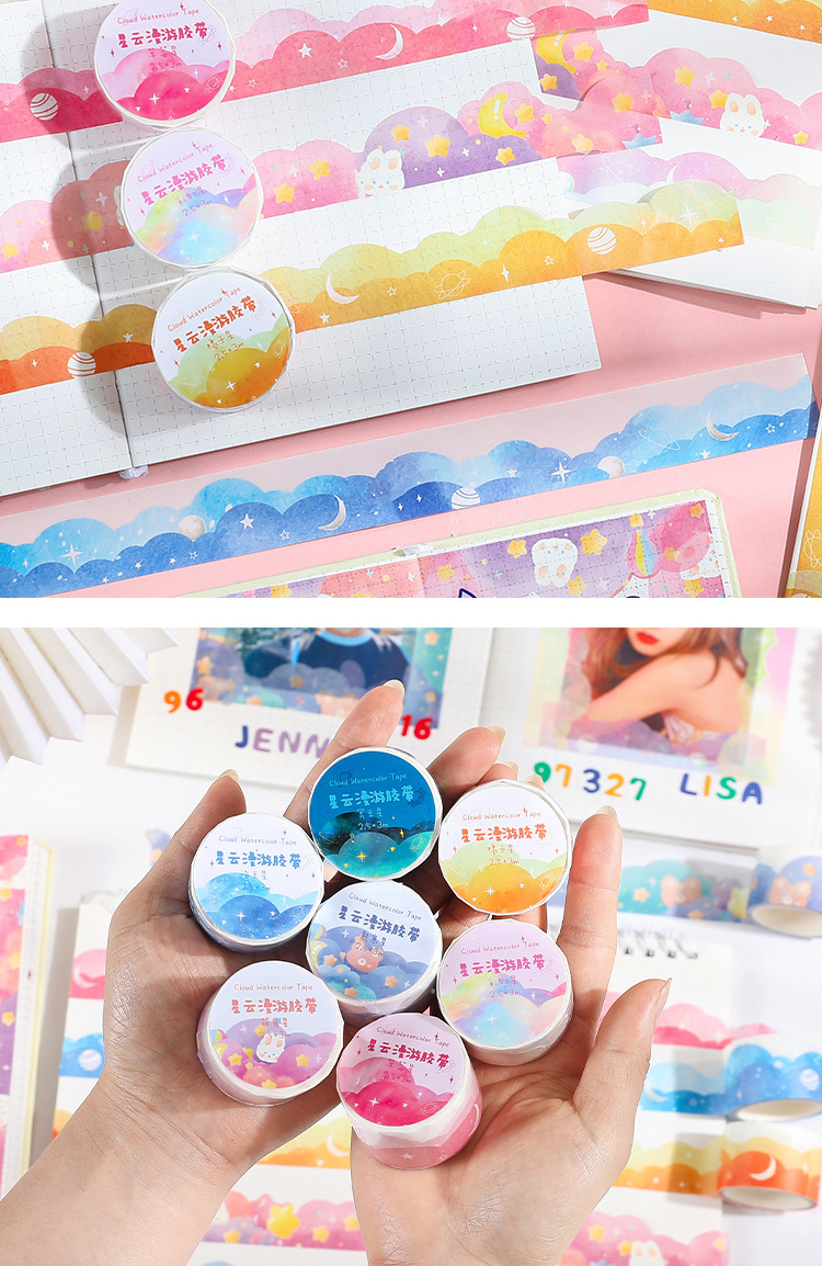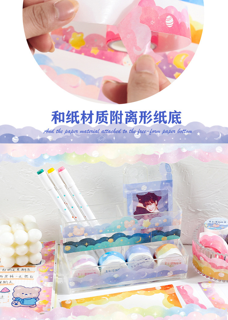 성운 로밍 시리즈 구름 테이프 레이스 특수 모양의 파도 테두리 풍경 손 계정 필름 소재 장식 스티커스토어 가기