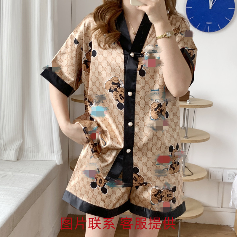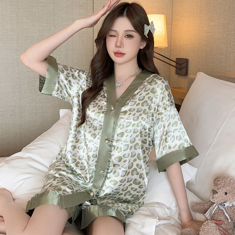 실크 잠옷 아이스 실크 잠옷 대외 무역 잠옷 여성 플러스 사이즈 반소매 아이스 실크 홈웨어 세트스토어 가기