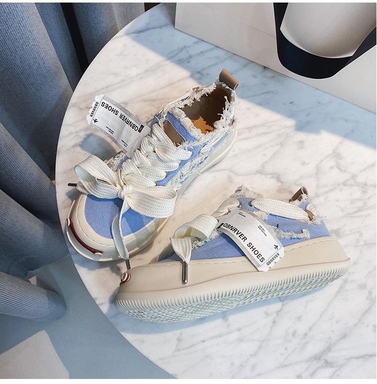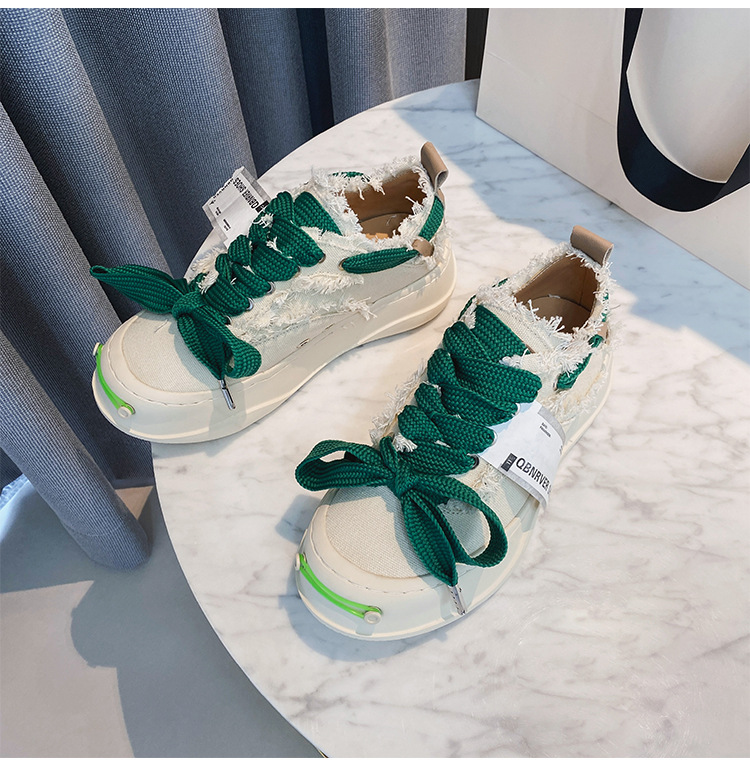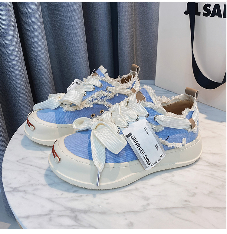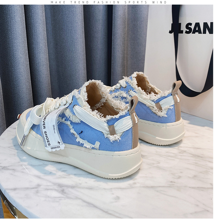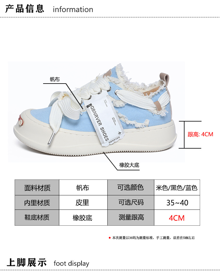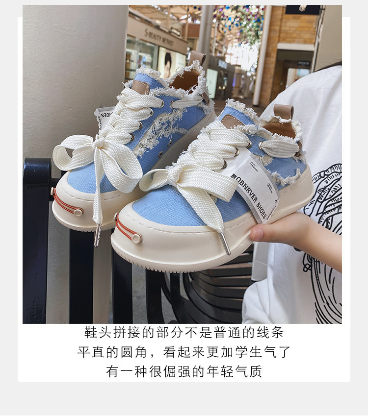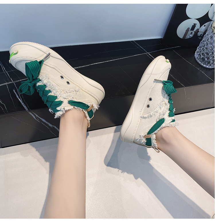 2024 새로운 플랫폼 캐주얼 여성 신발 오픈 미소 다목적 캔버스 신발 크기 작은 흰색 신발스토어 가기