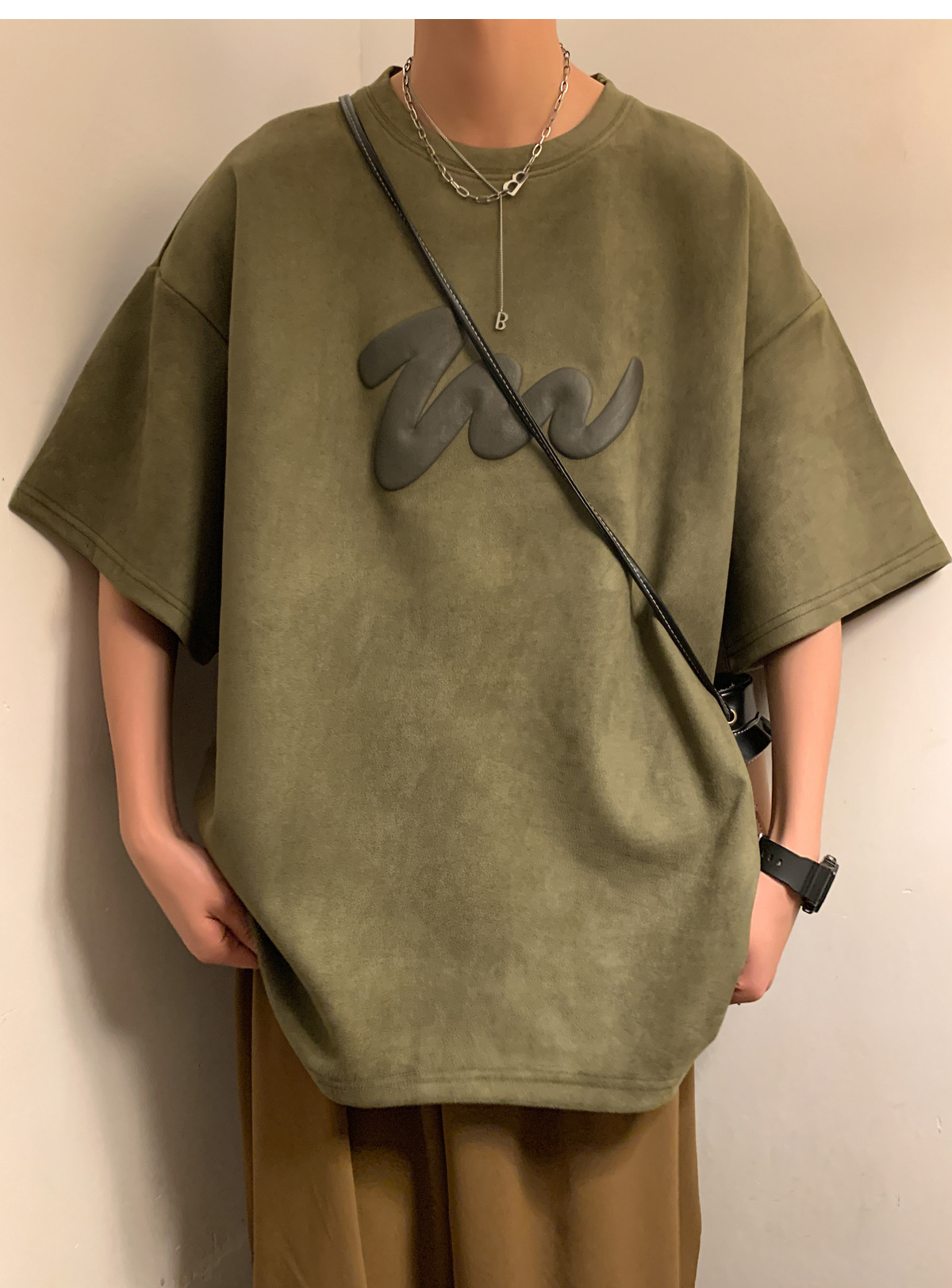 반소매 티셔츠 남성 2024 여름 새로운 패션 브랜드 트렌디 한 미국 헤비 스웨이드 폼 프린트 반소매 티셔츠스토어 가기