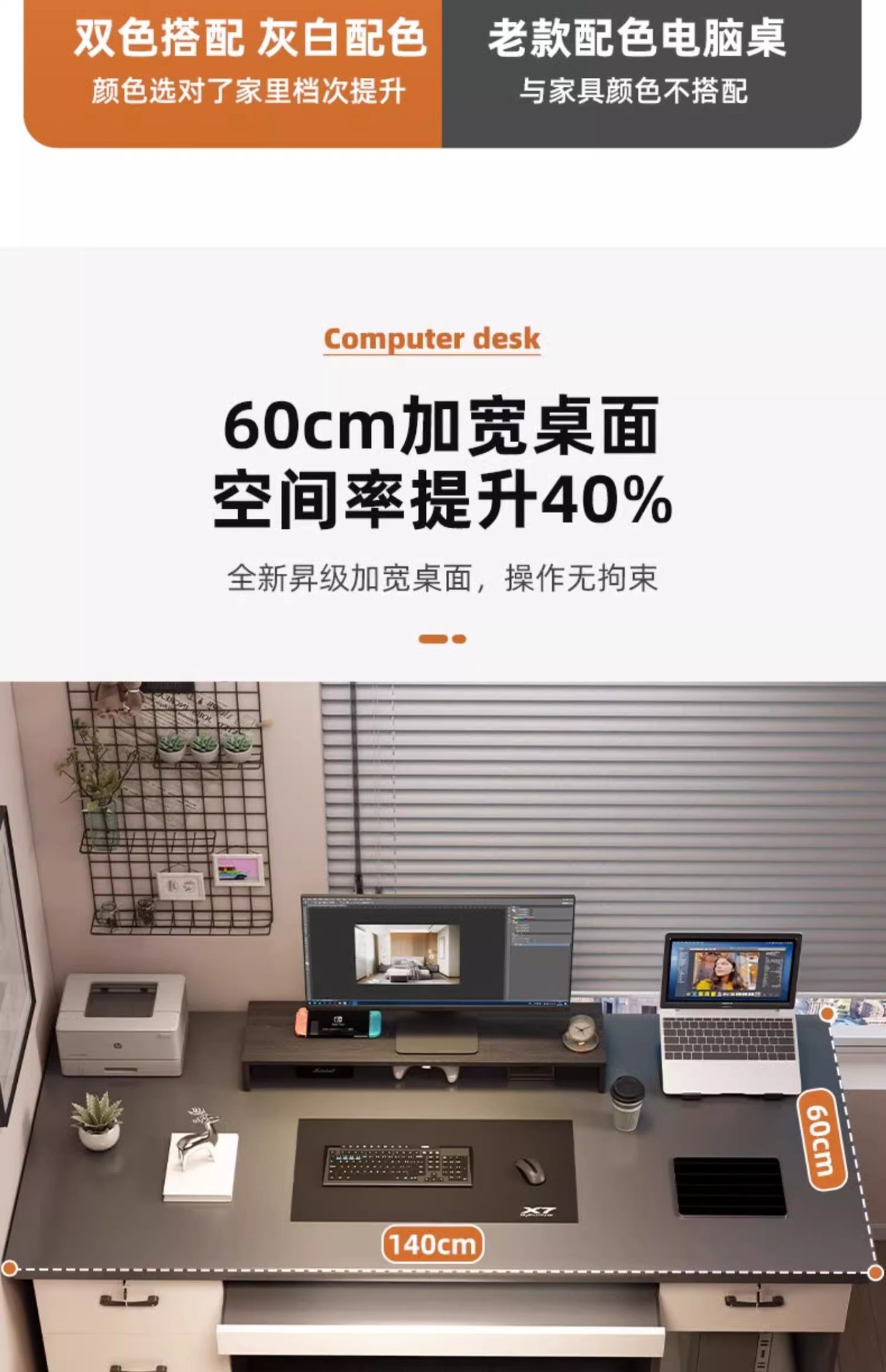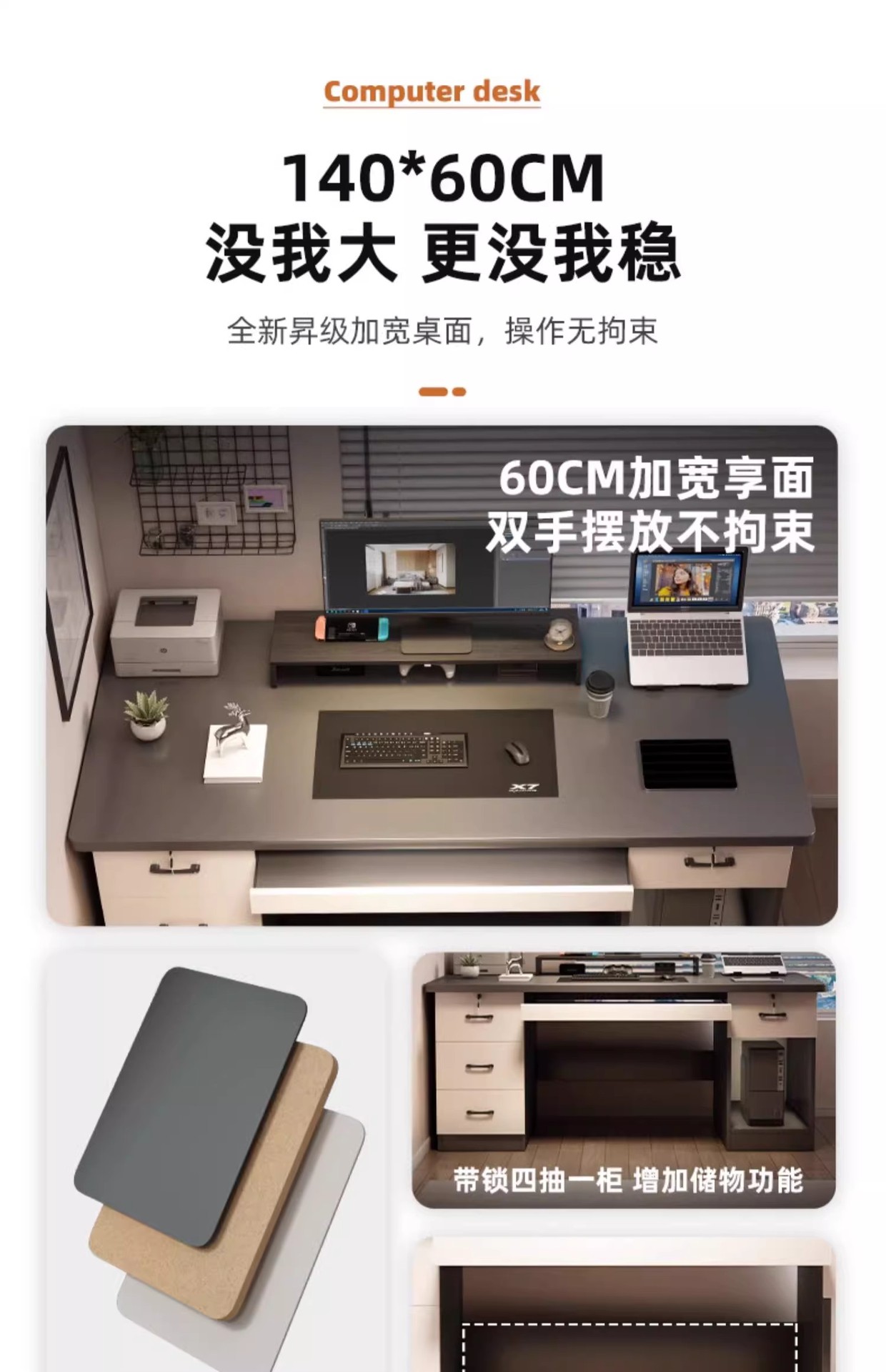 • [테이블과 의자 조합-자유로운 높이 증가 랙] 고급 회색 140CM (5 서랍)