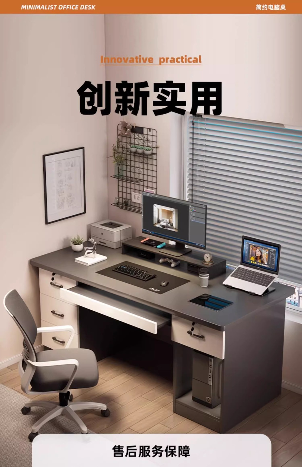 • [테이블과 의자 조합-자유로운 높이 증가 랙] 고급 회색 120CM (3 개의 서랍)