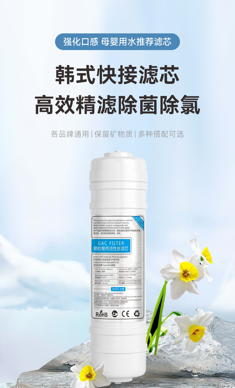 정수기 필터 카트리지 전처리 필터 입자 활성탄 퀵커넥트 UDF 초미세 여과 순수기 코코넛 껍질 활성탄 정수 필터 카트리지스토어 가기