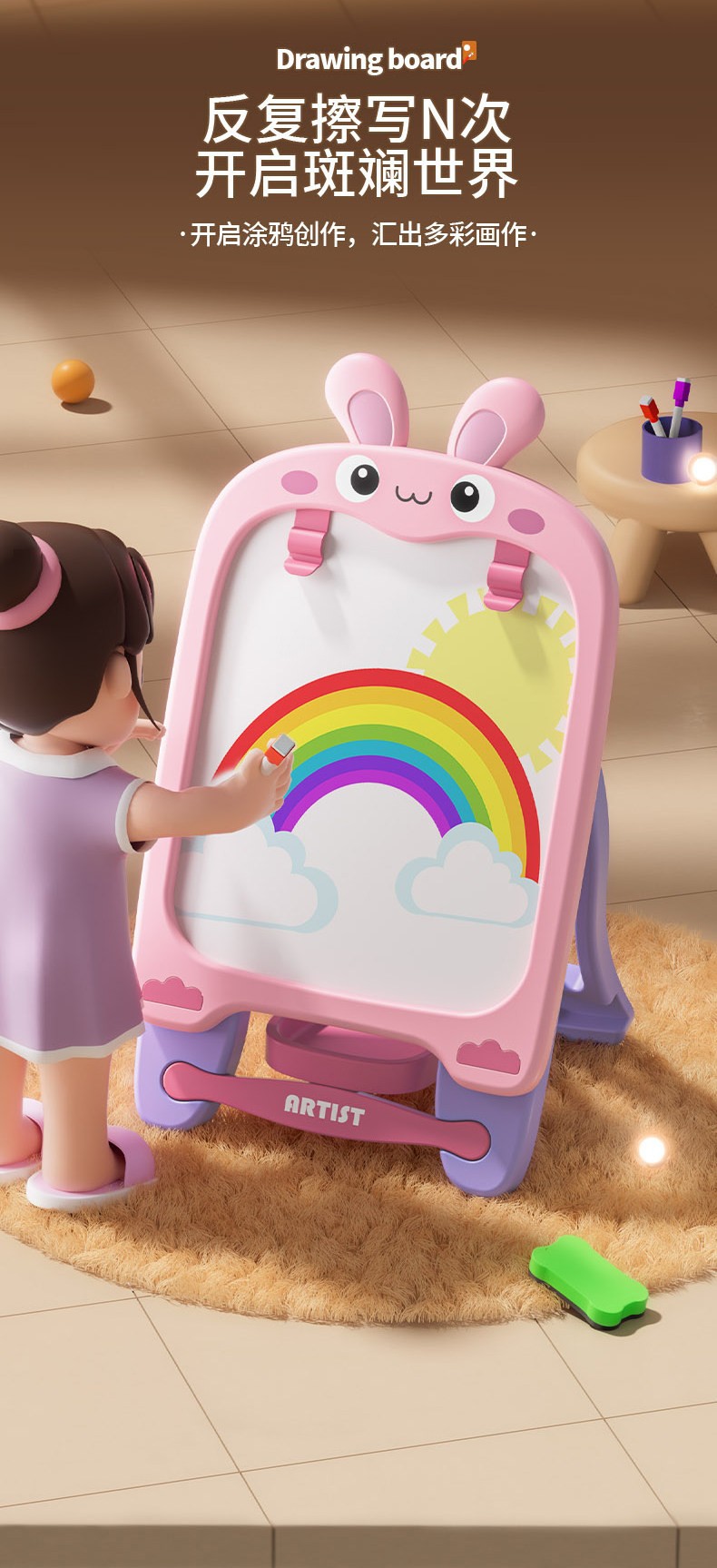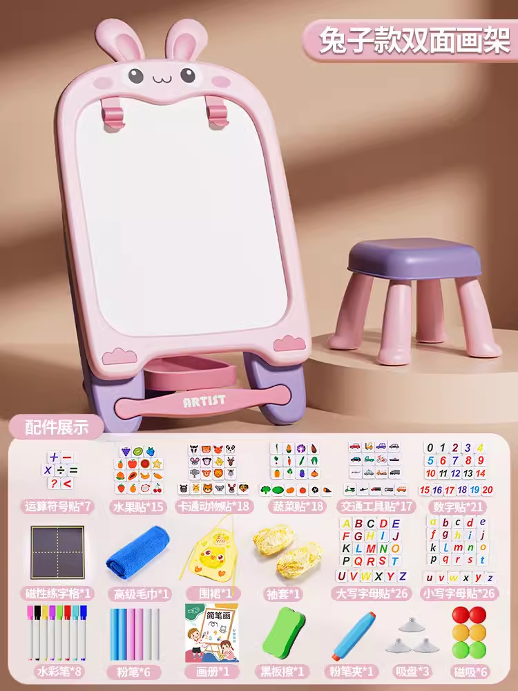 • 토끼 양면 드로잉 보드 + 의자 + 고급 선물 가방