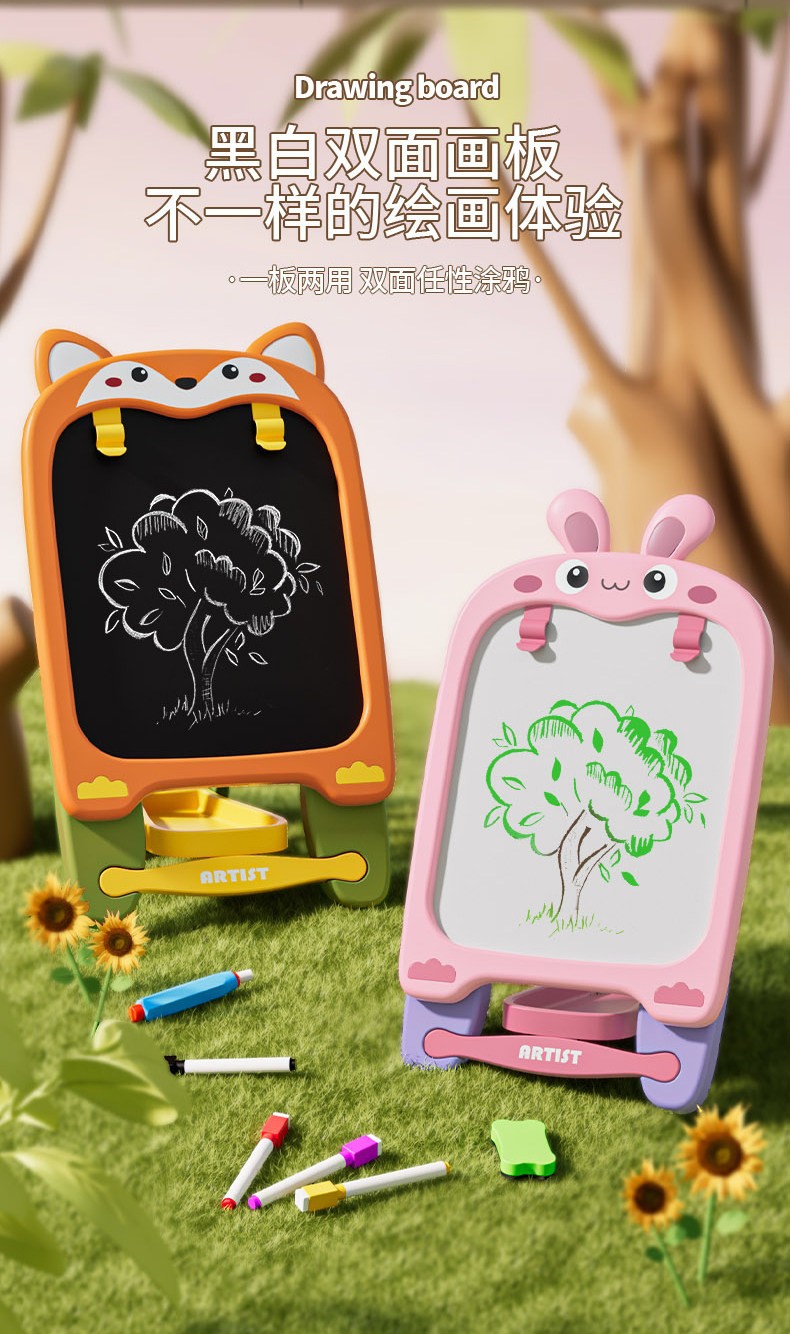 • 폭스 양면 드로잉 보드 + 의자 + 고급 선물 가방