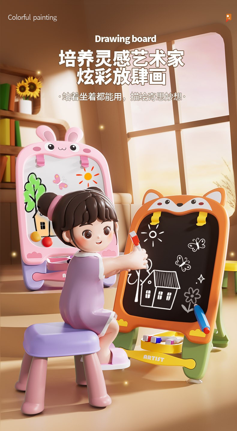 • 폭스 양면 드로잉 보드 + 의자 + 일반 선물 가방